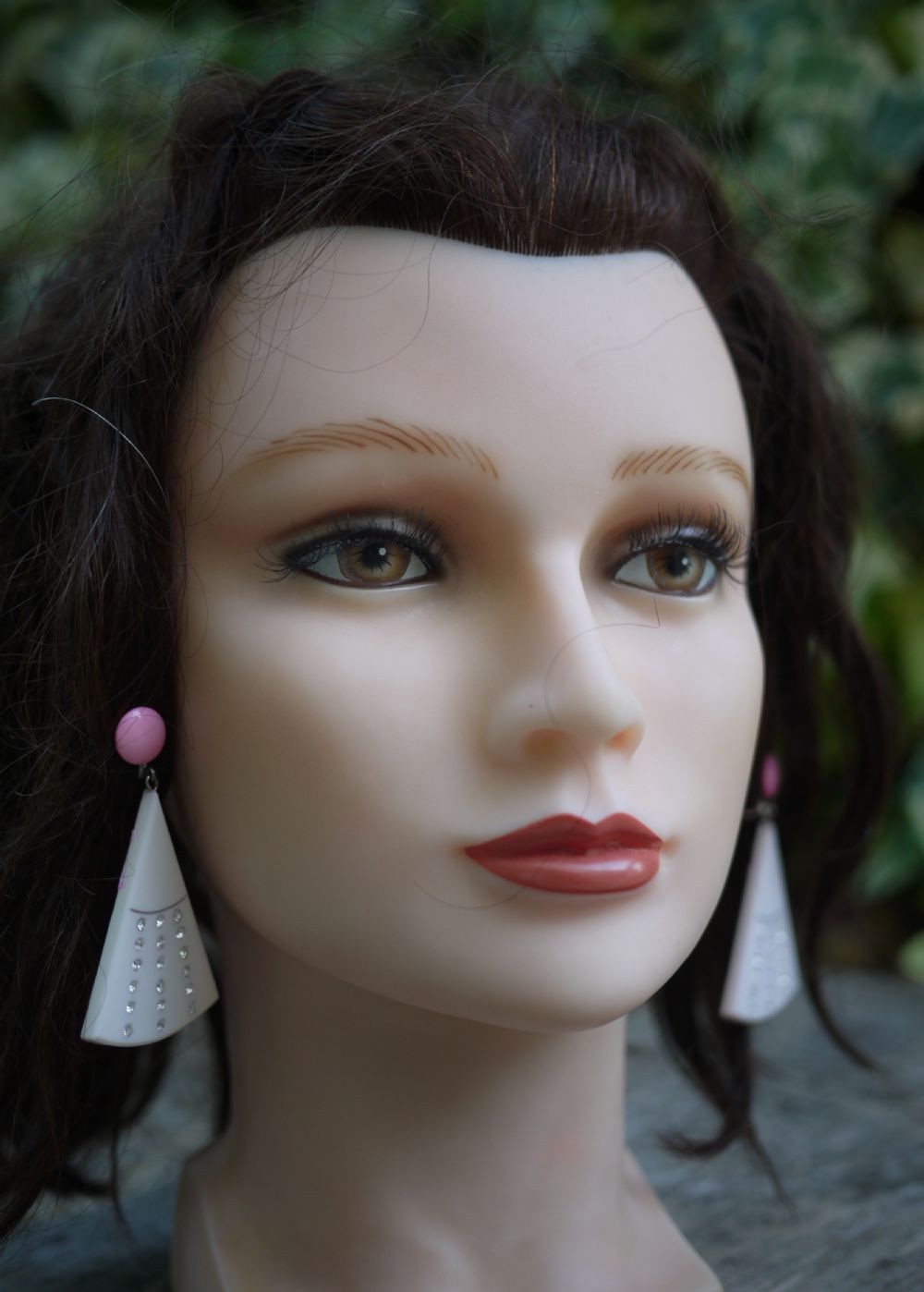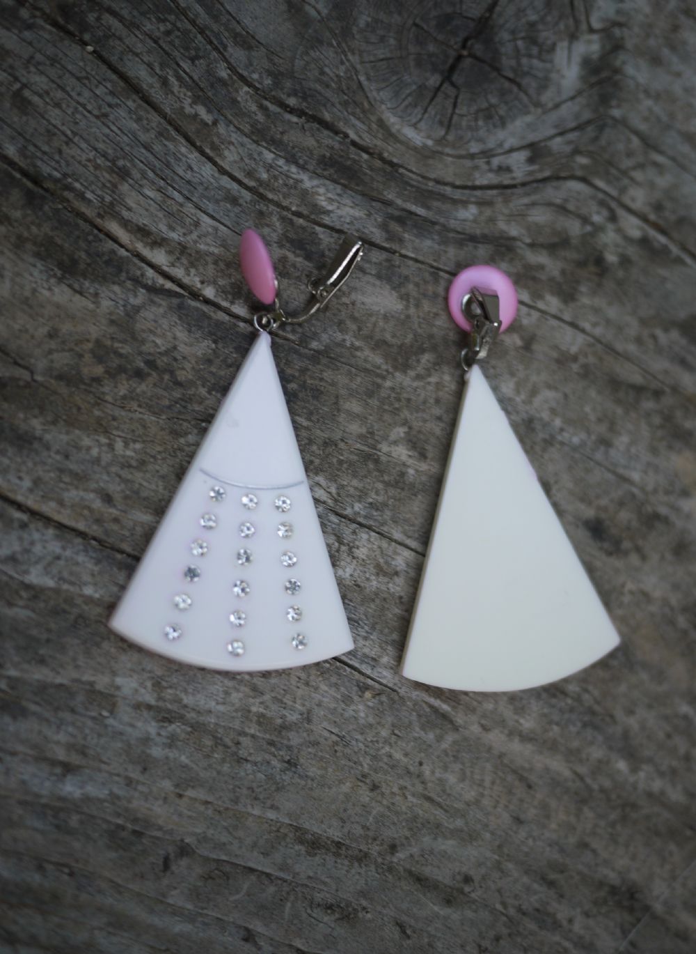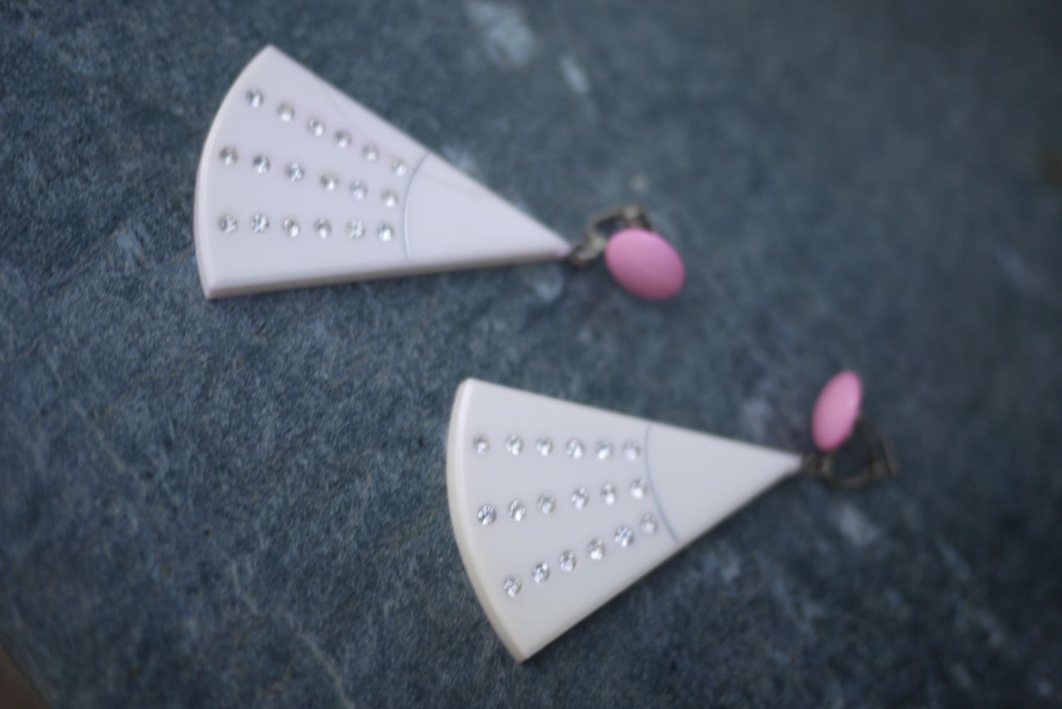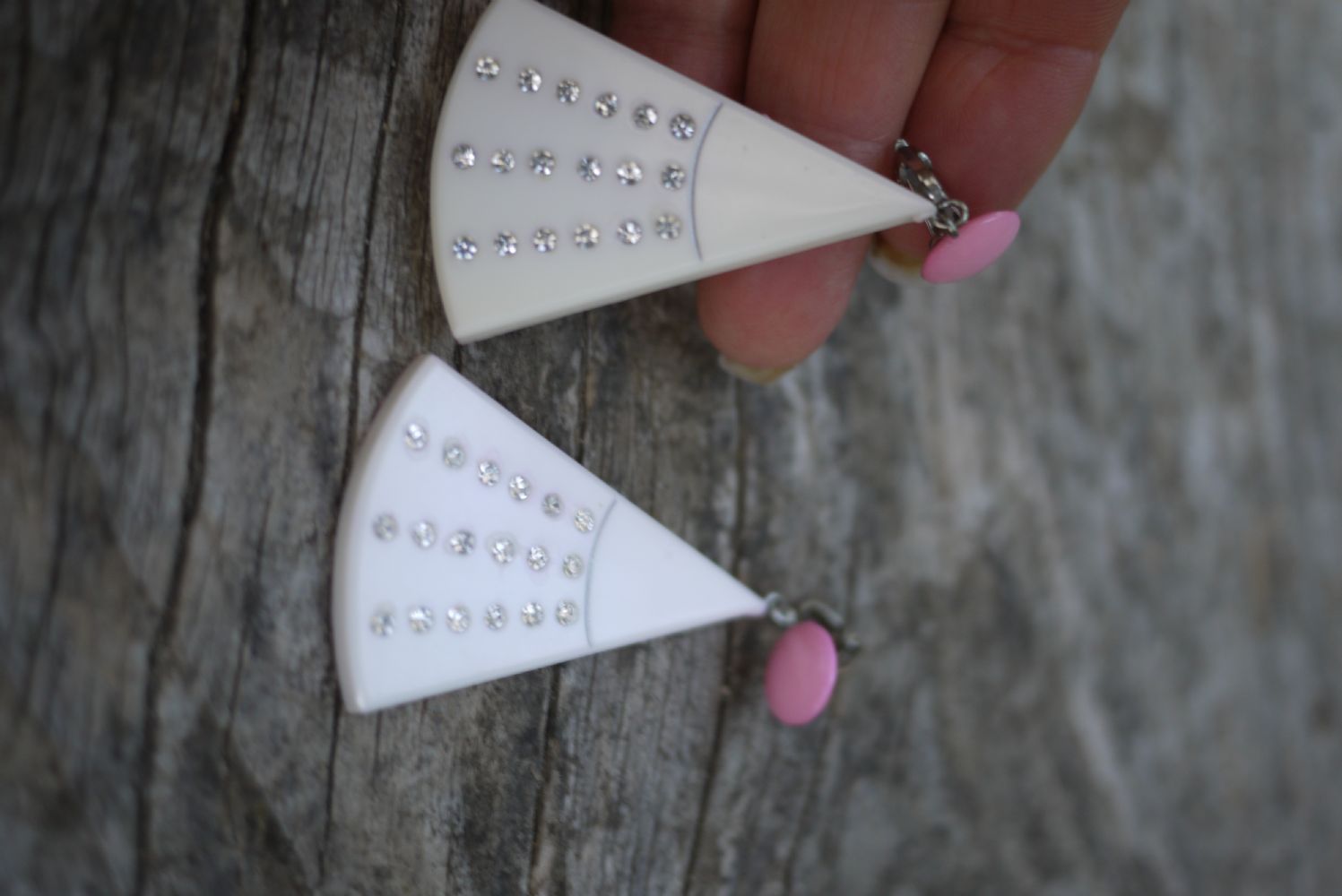 Orecchini a clip estivi Colore bianco latte/rosa strass