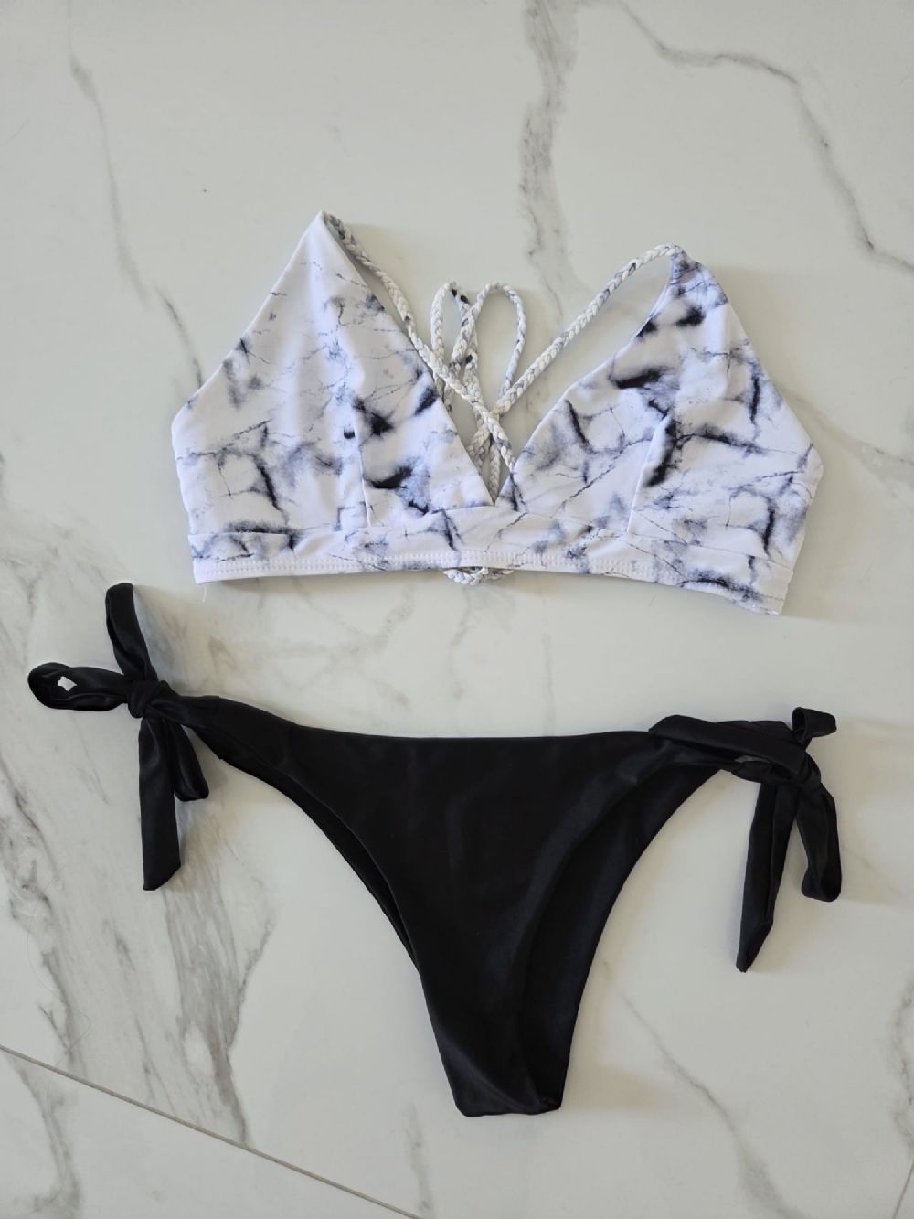 Costume bikini bianco e nero Shein Tg L, poliestere e spandex, indossato una o due volte