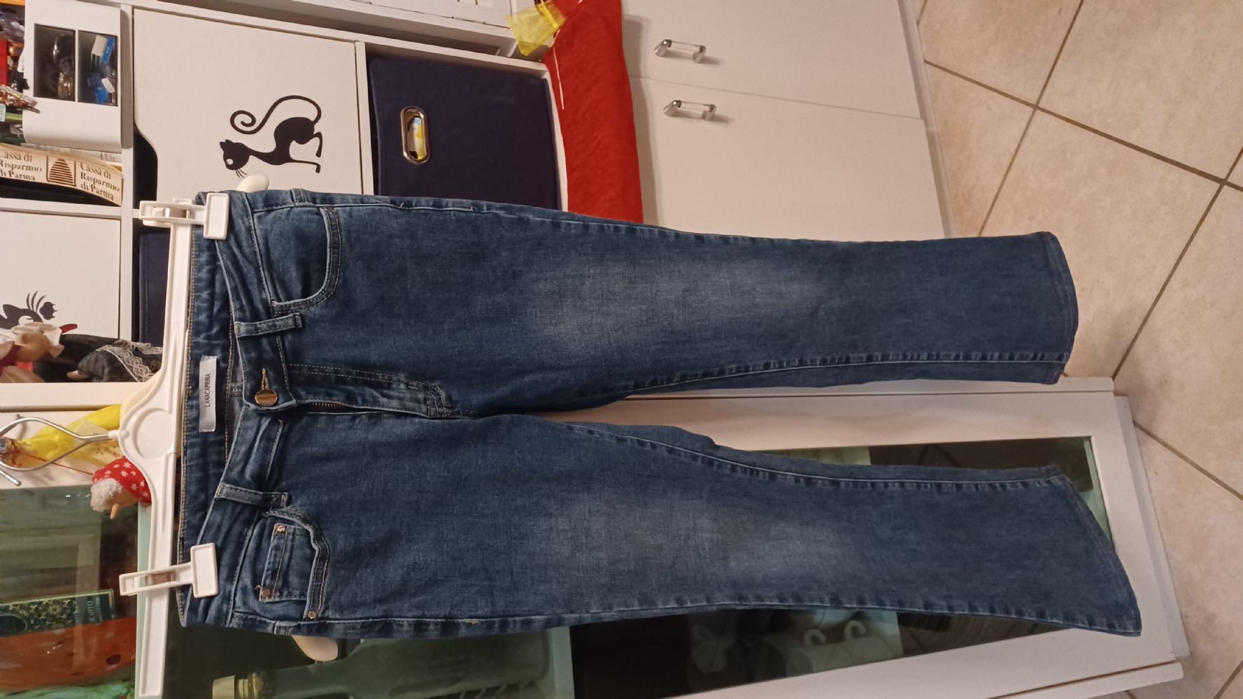 Descrizione:Belli. Leggermente a zampa. Nessun difetto. 97% cotone. Taglia 42 giusta. Vita 35 lunghezza 95
