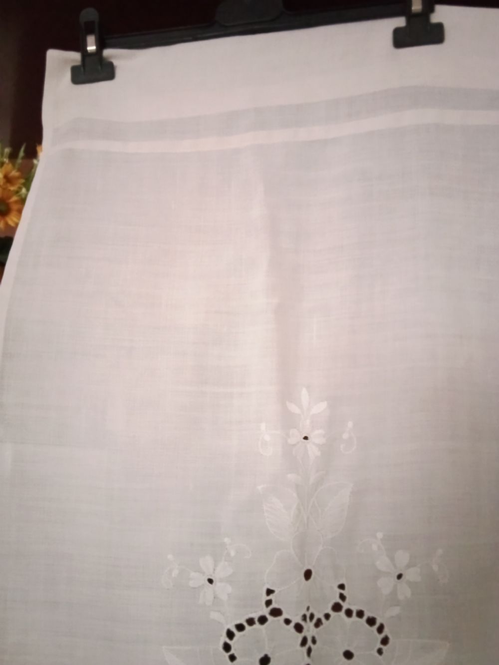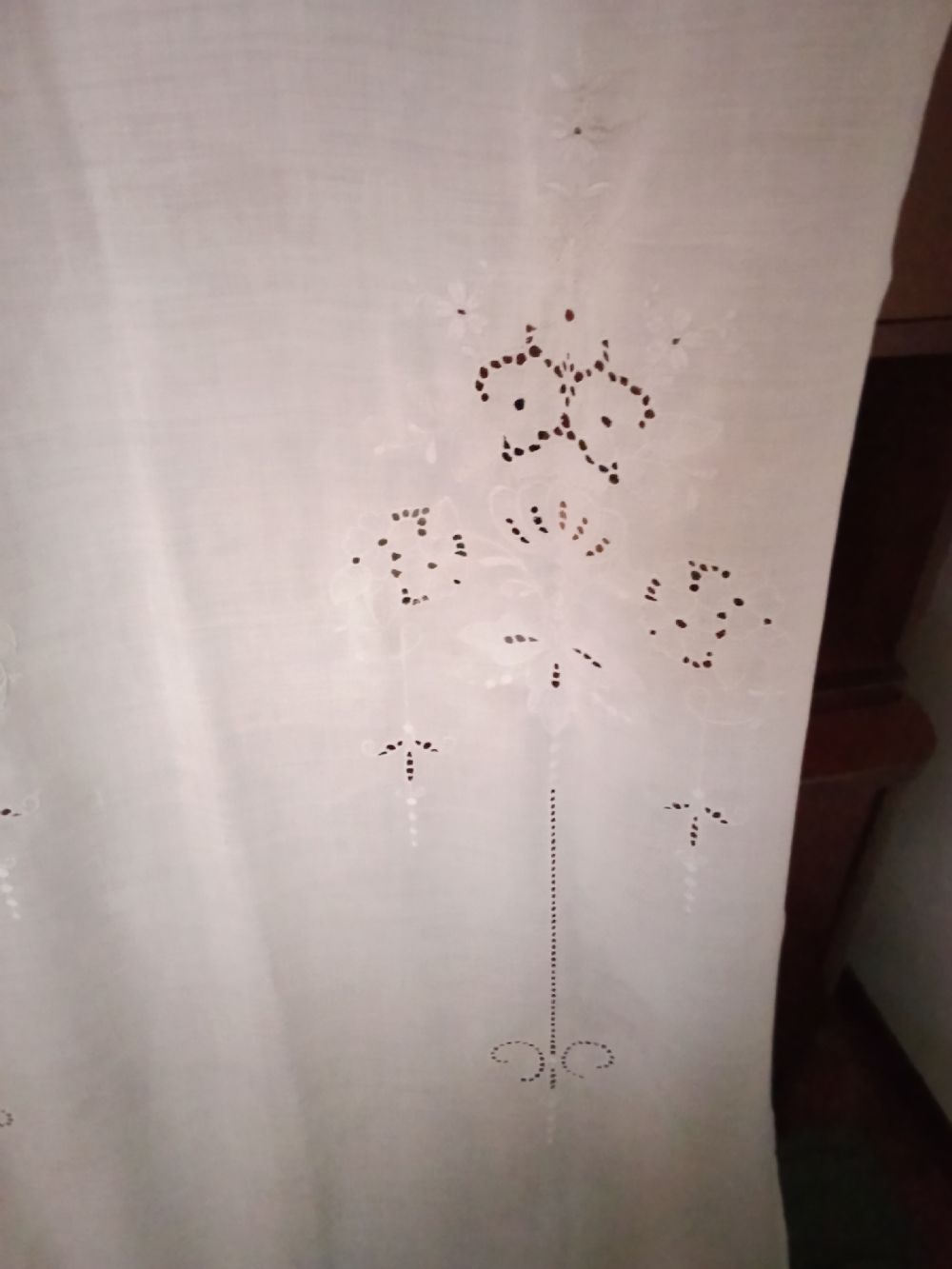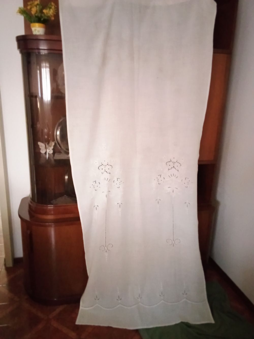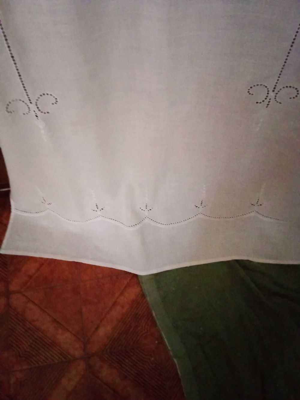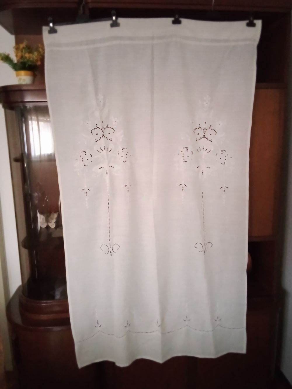 Descrizione:Tende a vetro in tessuto pesante e sintetico. Faccio presente che la sarta ha fatto una cucitura in alto per accorciarle, ma si possono scucire e allungare di circa un cm o due. Misure: h 1,64-larghezza 96 cm. C'è anche una tenda uguale per porta finestra: misura in altezza 2,20 m e in larghezza 96 cm. Spedizione diretta con rimborso su Postepay.