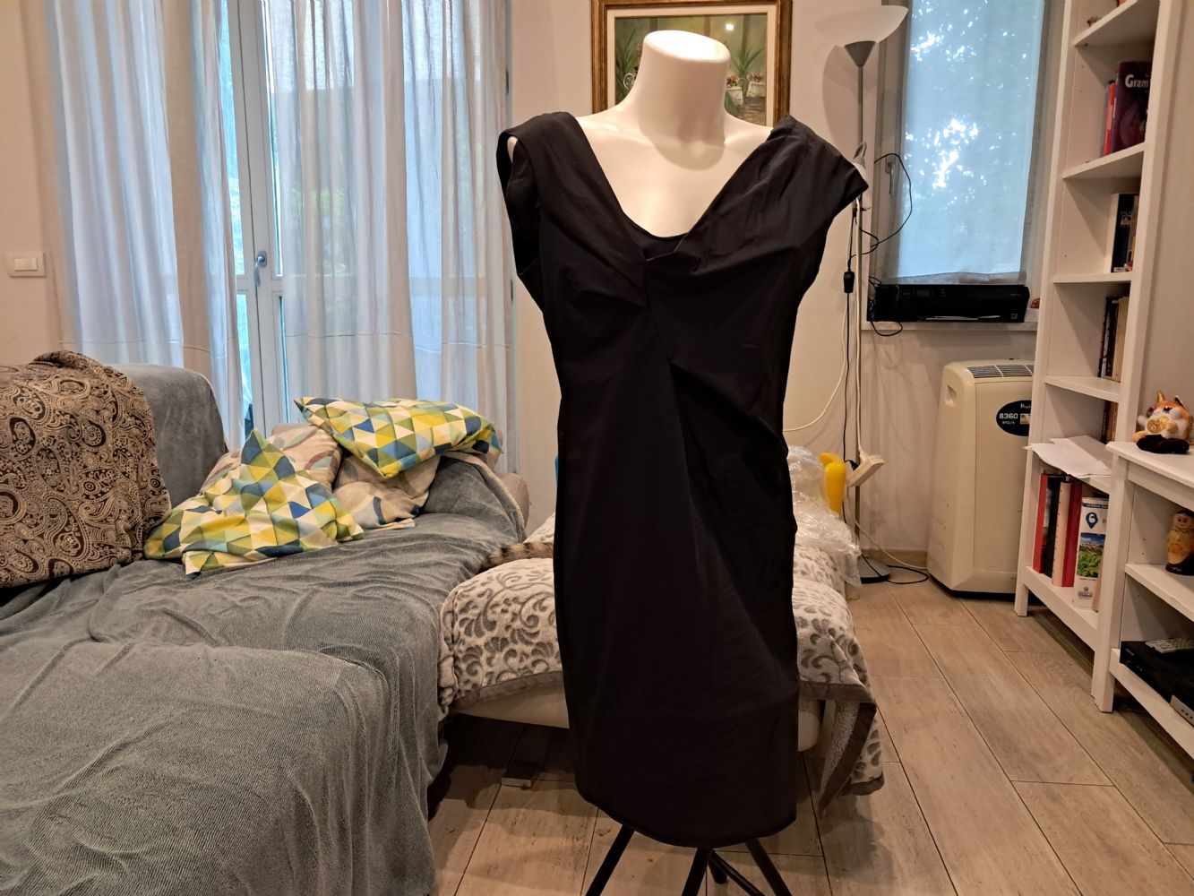 Descrizione:Abito co. Fodera interna, colore blu, taglia 42. Arriva al ginocchio. Scollo asimmetrico. Ottime condizioni.