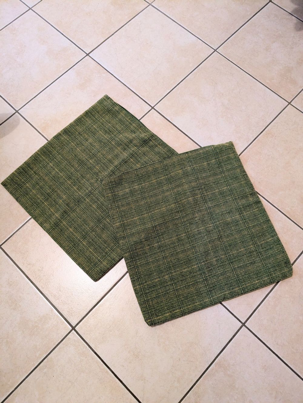 Descrizione:Coppia di federe in robusto tessuto, nuove mai usate, con zip laterale. Forma quadrata, il lato misura cm 48