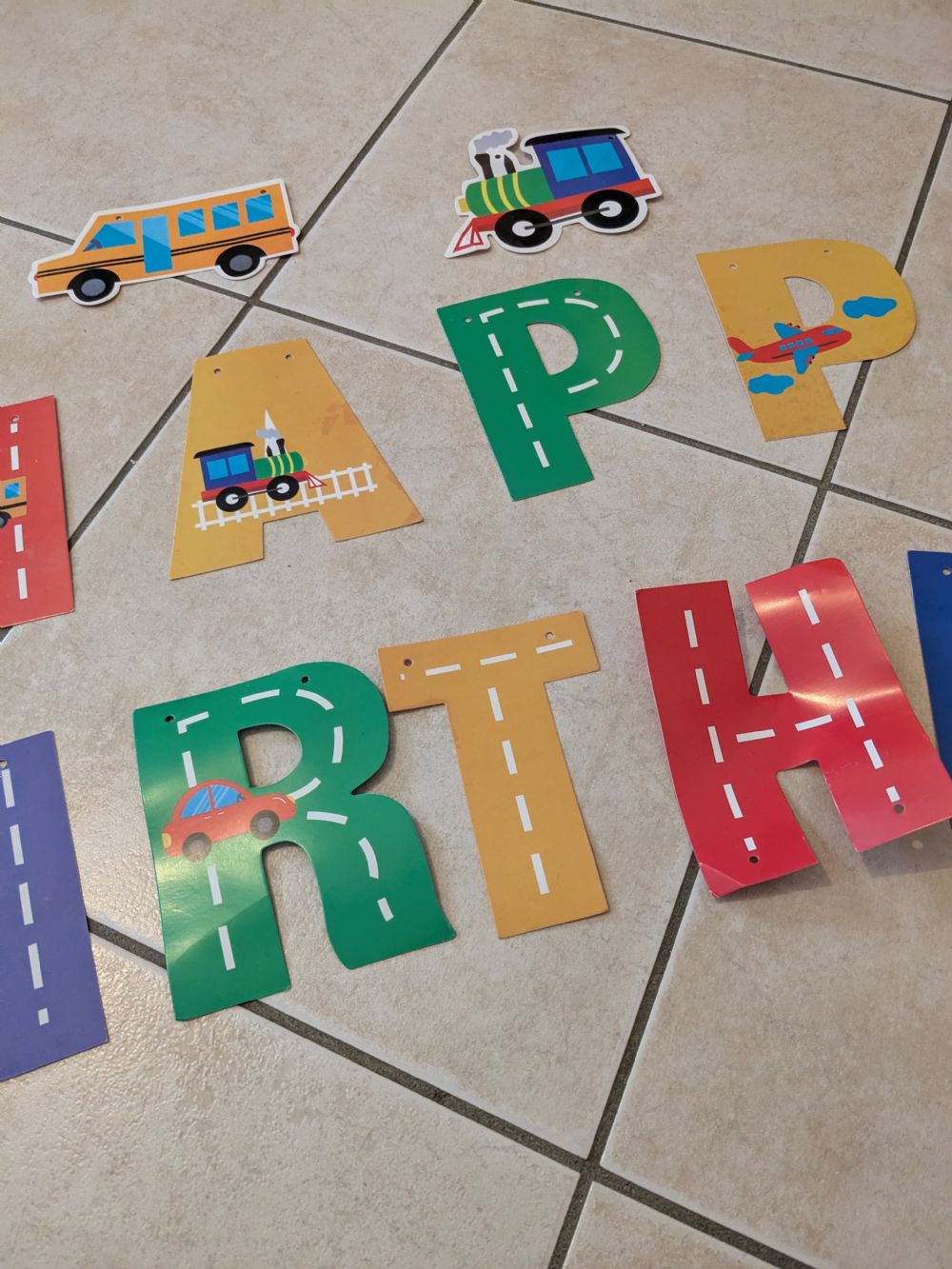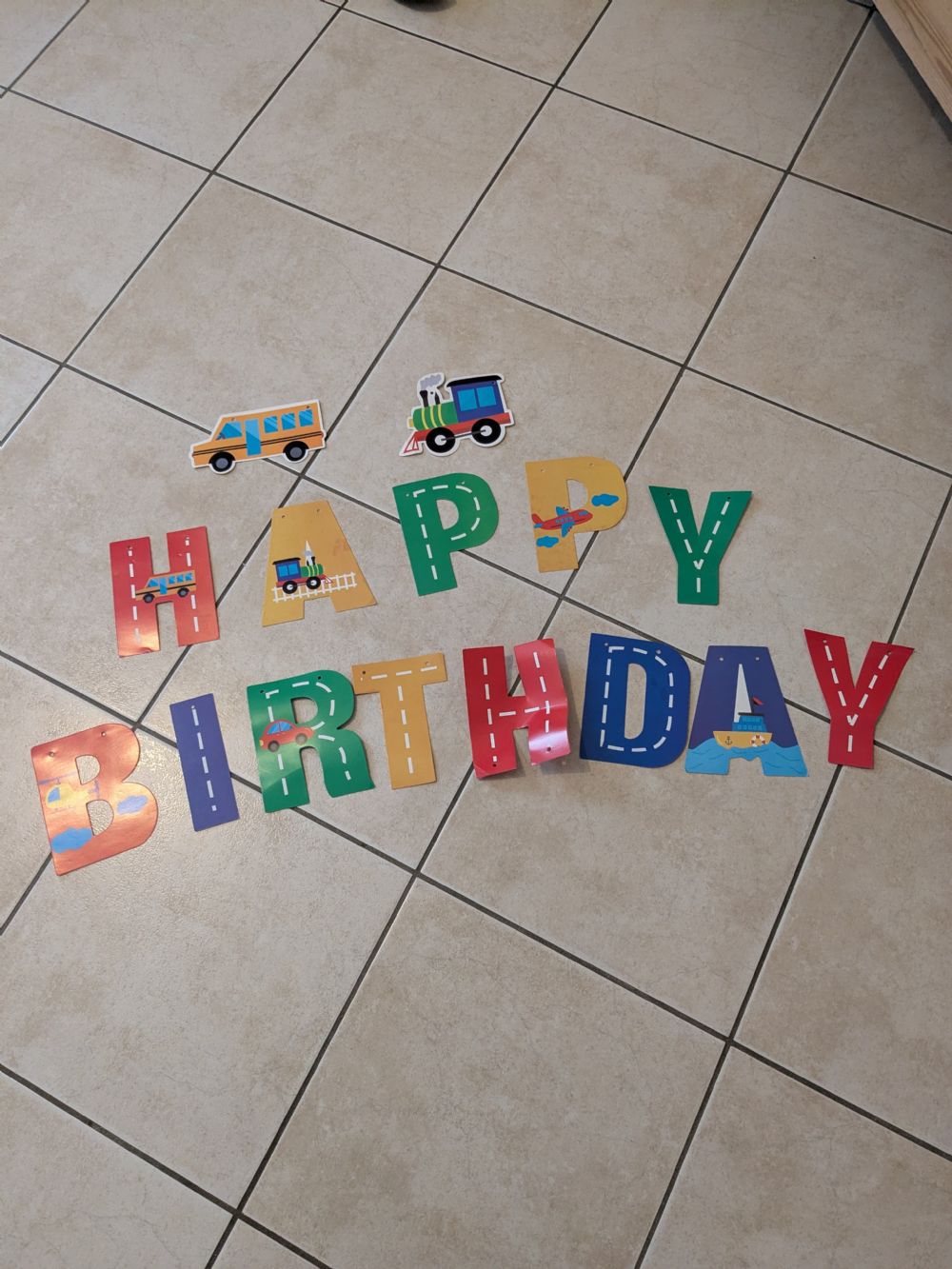 Festone compleanno in cartoncino plastificato, manca solo la cordina per appenderlo. E'' stato usato una volta