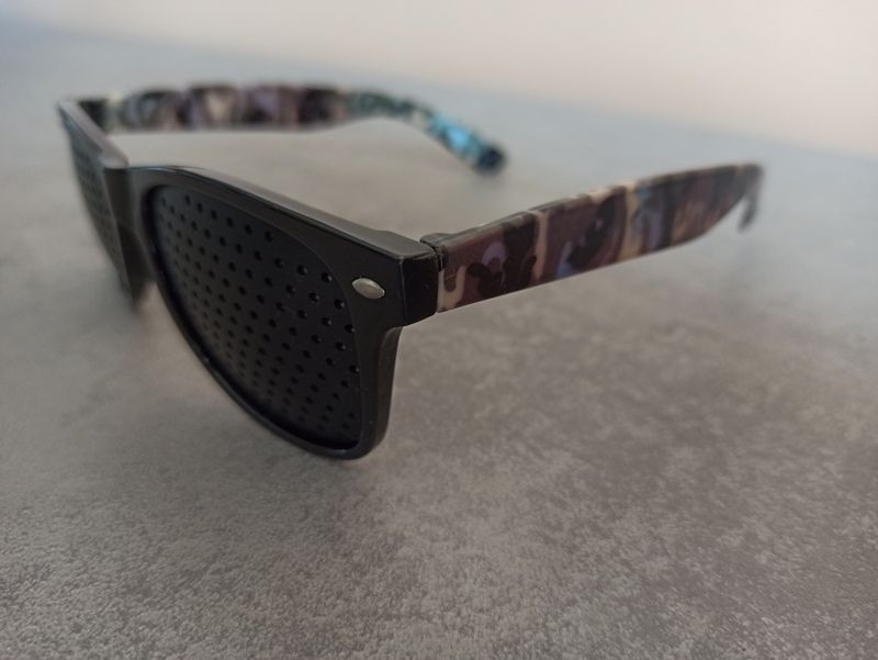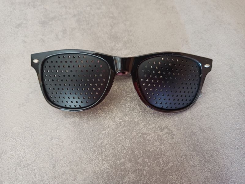 Occhiali con fori stenopeici, usati solo una volta
