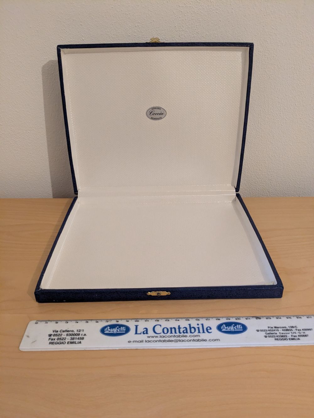 Descrizione:Conteneva una targa commemorativa, ha qualche annetto ma in generale è in buono stato. Leggermente pelata in uno dei lati (fotografato), interno senza difetti