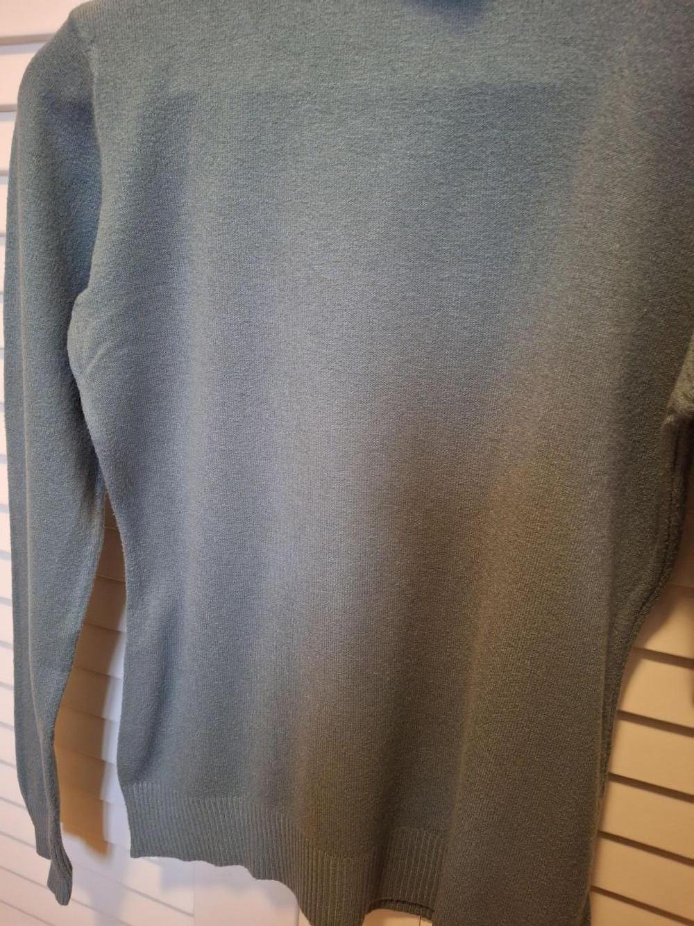 Descrizione:Maglioncino colore verde salvia,  usato più di qualche volta ma in buonissime condizioni, lo scambio solo perché mi sta troppo attillato.