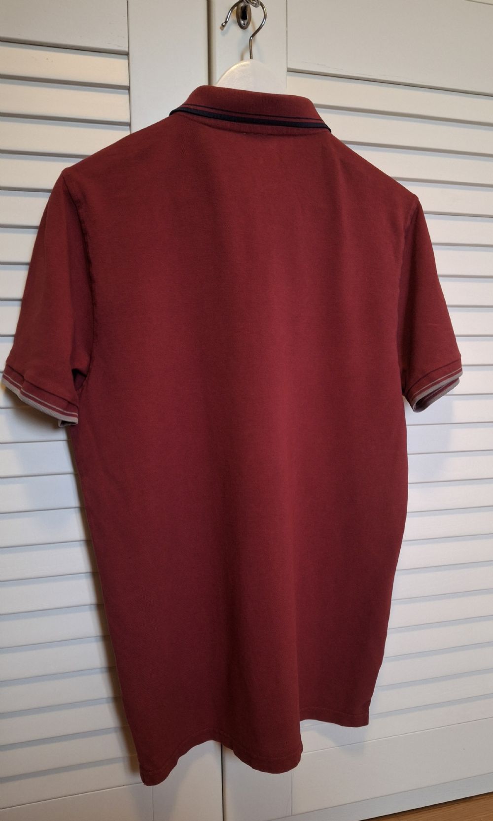Descrizione:Polo colore rosso amaranto/ bordeaux usata pochissimo, sul davanti vedo un leggero stacco di tonalità più chiara ma forse è una delle normali differenze dovute al trattamento riportato nell'etichetta (vedi foto dettaglio). Comunque da indossata non si nota.