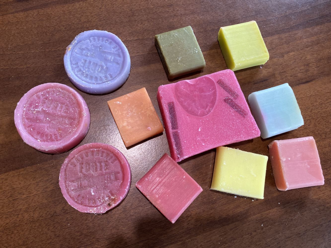 Descrizione:Saponette colorate varie in bagno in un barattolo da un po’ mai usate ma non so quanto abbiano