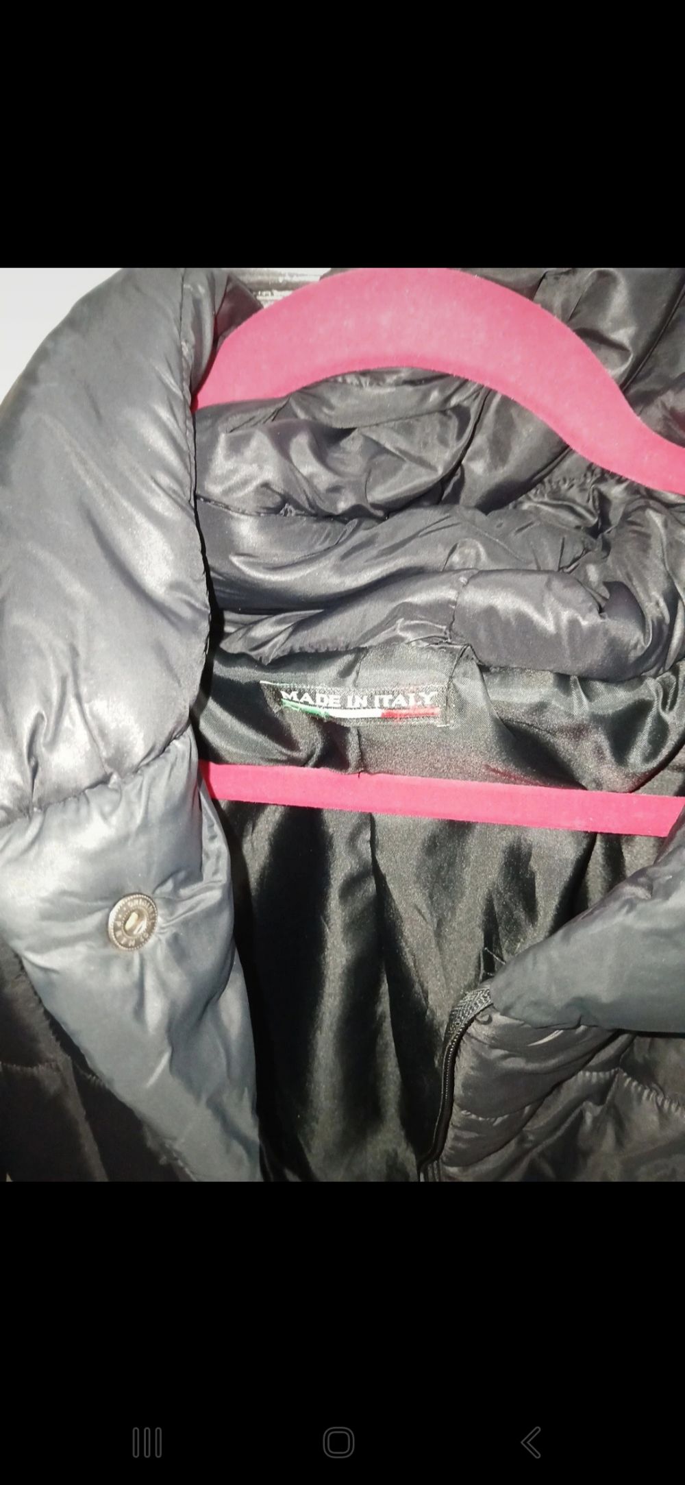 Descrizione:Piumino nero TG. M. Made in Italy. Ha il cappuccio. Veste avvitato. Molto bello. Scambio a malincuore per cambio taglia