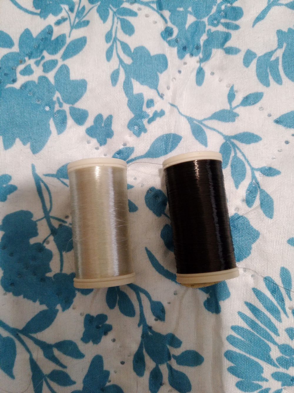 2 rocchette di filo di nylon chiaro e scuro sottilissimo x cuciture invisibili