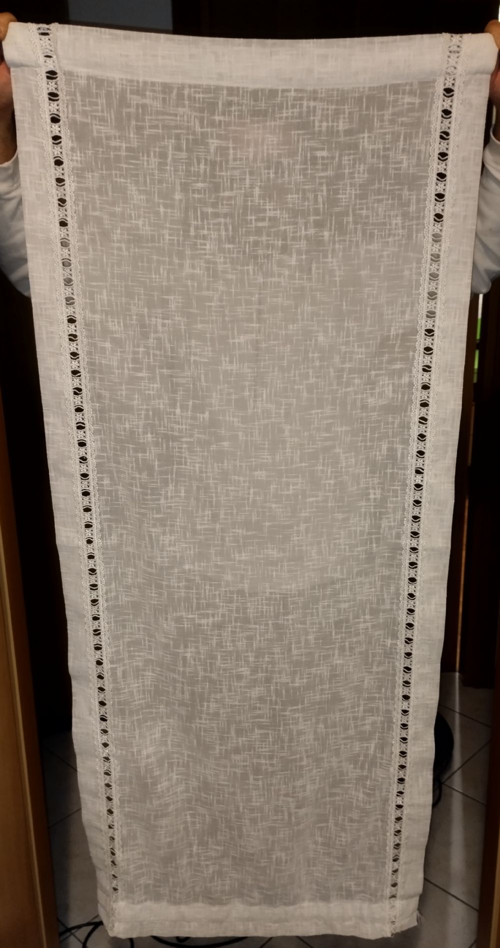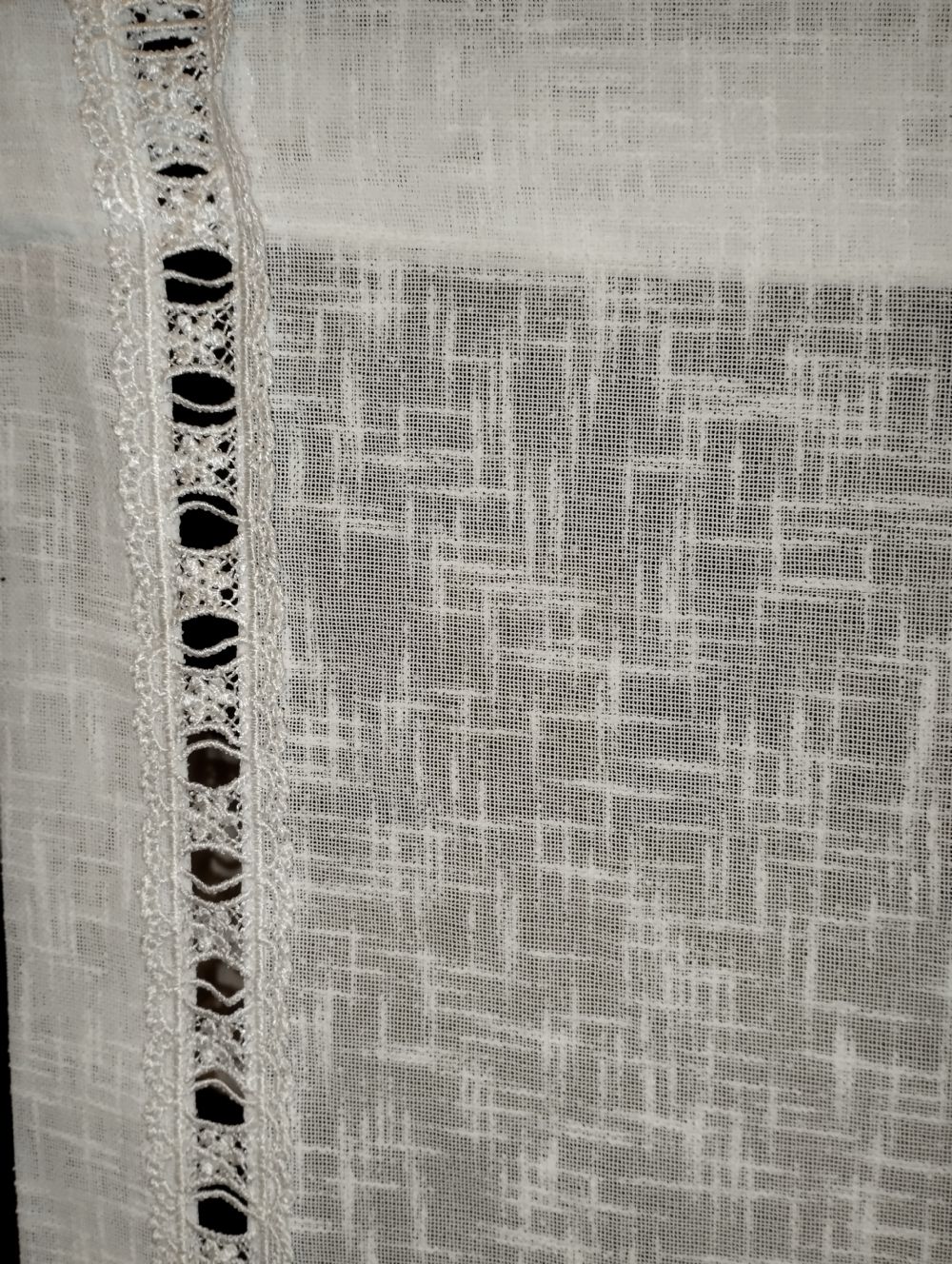 Descrizione:Tende per finestre in ottime condizioni, in tessuto sintetico o misto di media pesantezza, con decori in rilievo.