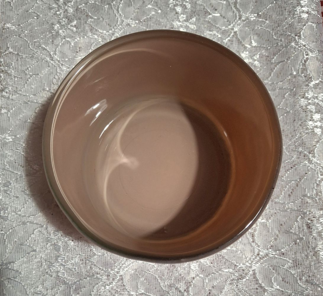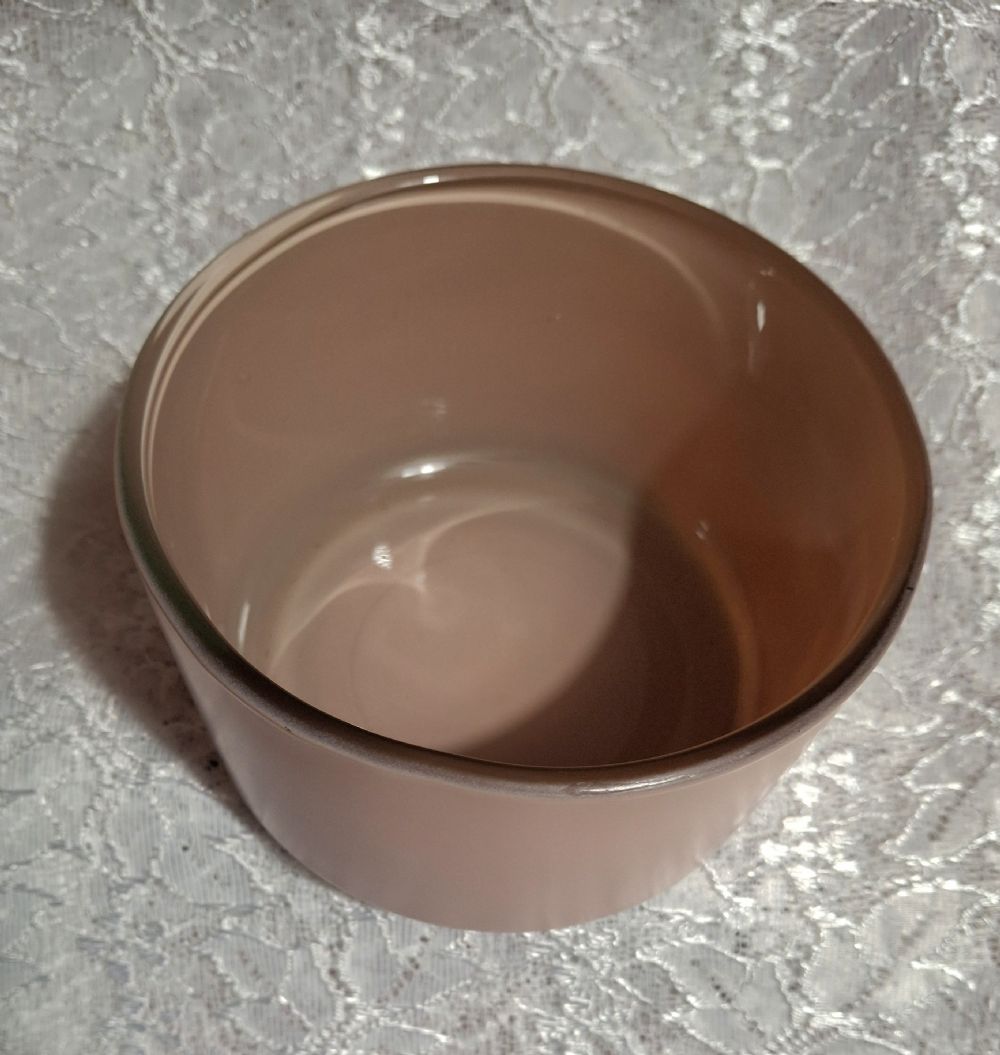 Descrizione:Ciotola in vetro rosa cipria satinato, conteneva una maxi candela profumata.