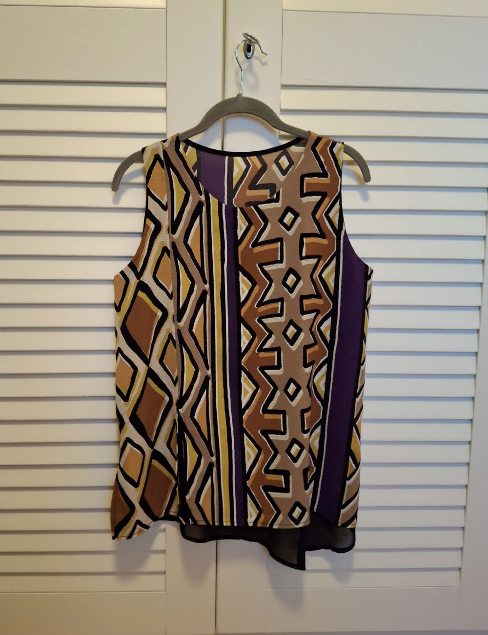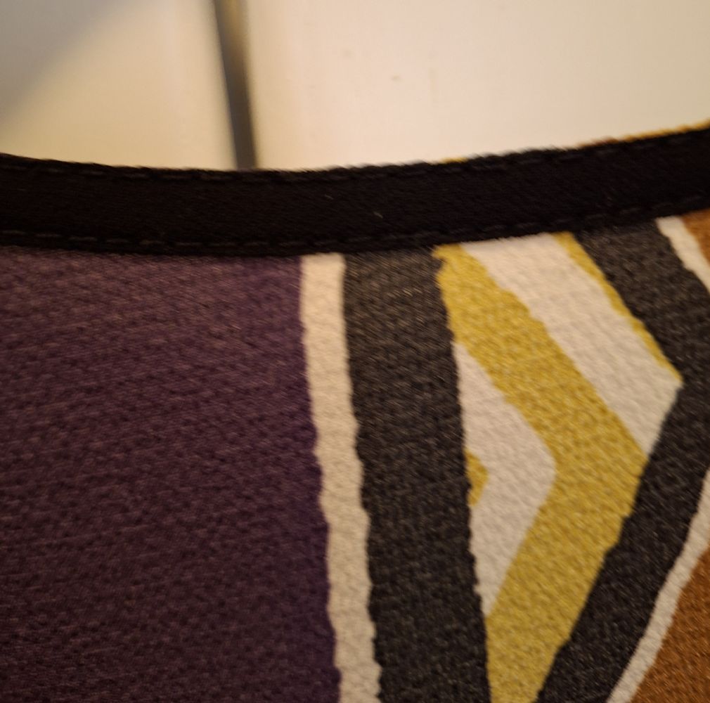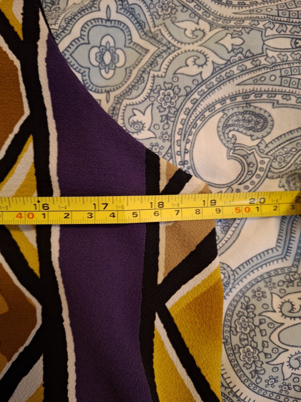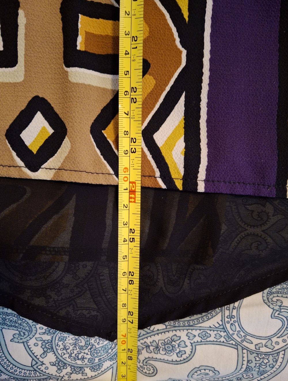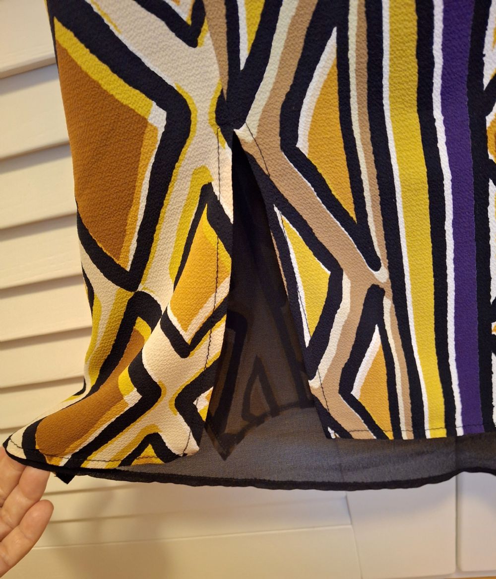 Acquisto non ben ponderato, mi piaceva tanto la fantasia e il modello con la parte davanti doppiata di un tessuto velato nero dal taglio asimmetrico ... ma mi è grande e l''avrò indossata due volte:(
