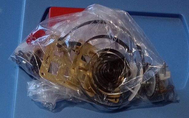 Descrizione:pezzi di orologio. Facevano parte di un kit di montaggio nuovo ma incompleto.