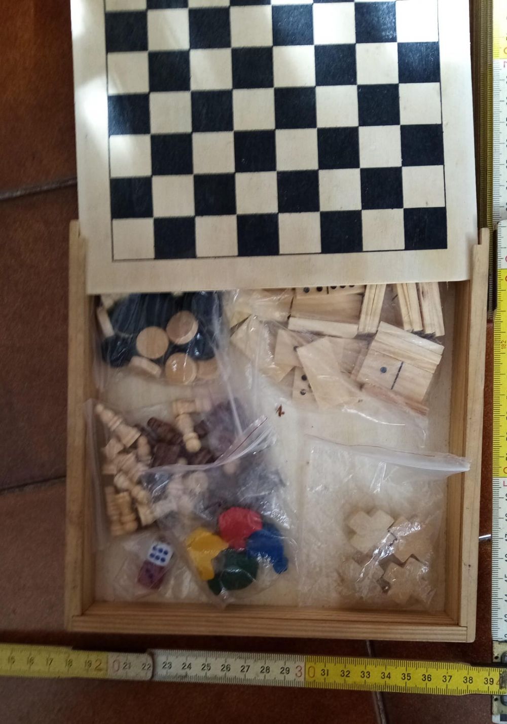 Scacchiera con dentro i pezzi per fare diversi giochi.