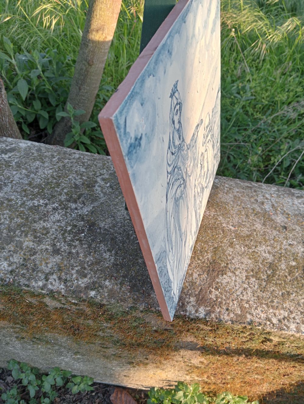 Raccontaci:È una piastrella della superfice di cm40*40 per un cm di spessore. Non so chi siano i personaggi raffigurati....