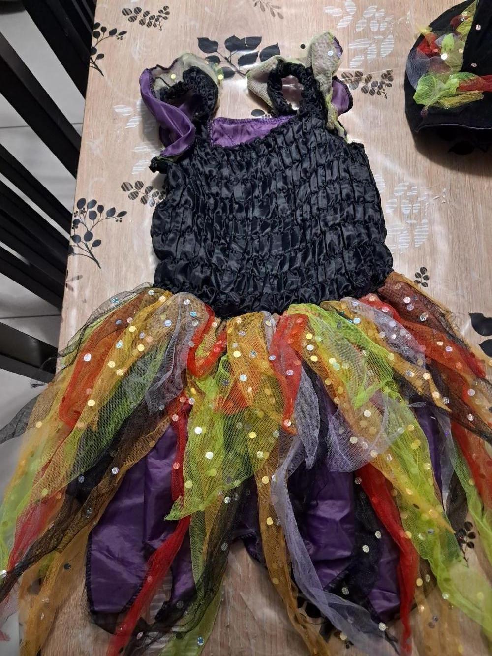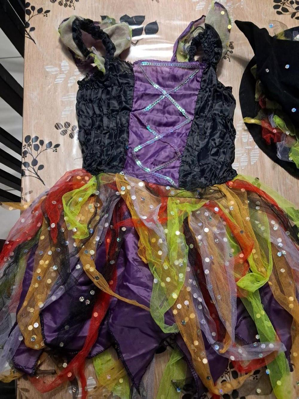Descrizione:Costume da streghetta in poliestere con cappello, taglia 5-7 anni. La stoffa risulta consumata in alcuni punti (vedi foto). Preso qui a tantissimi crediti e già con i difetti nella stoffa, usato da mia figlia 2-3 volte.
