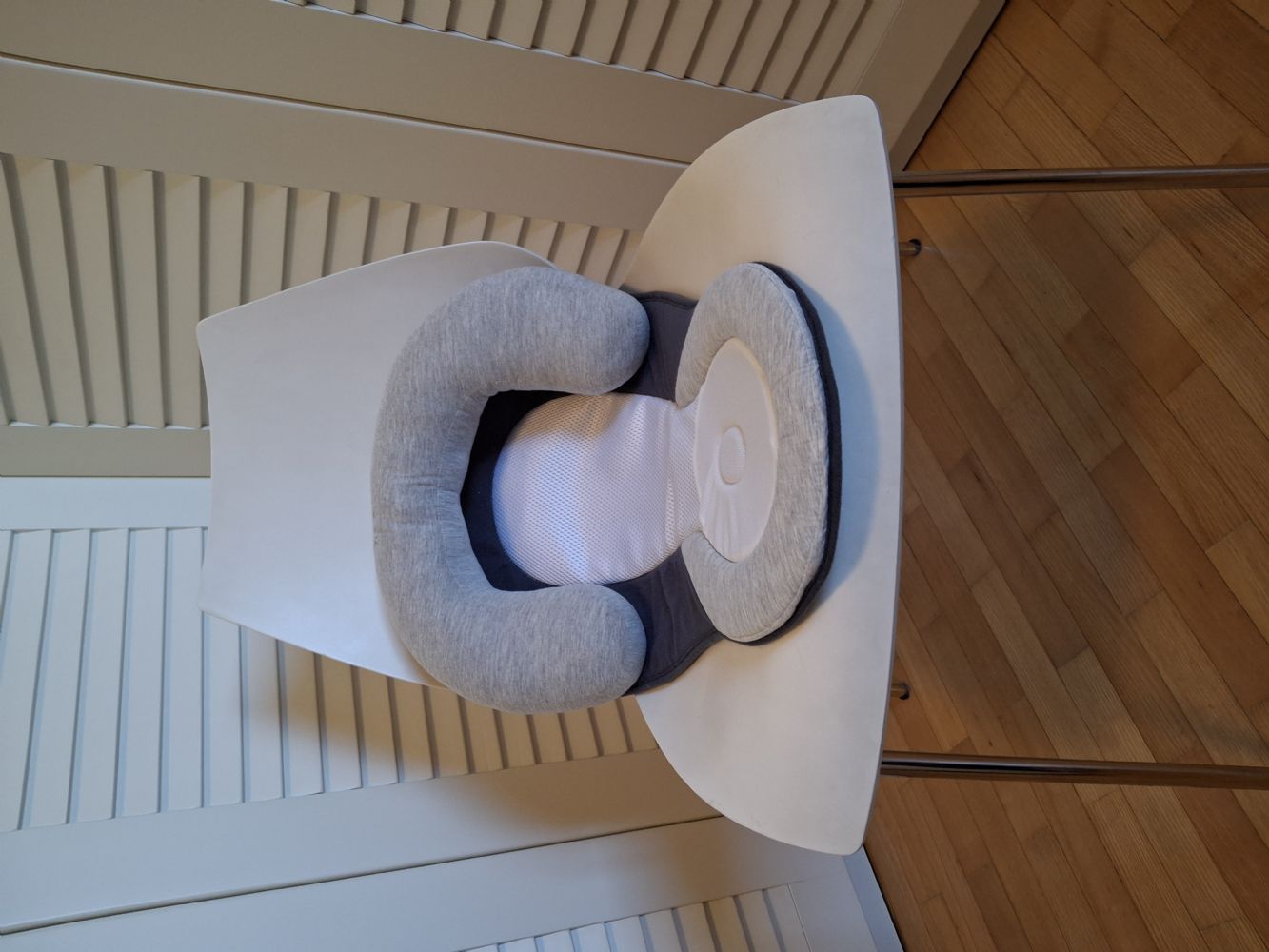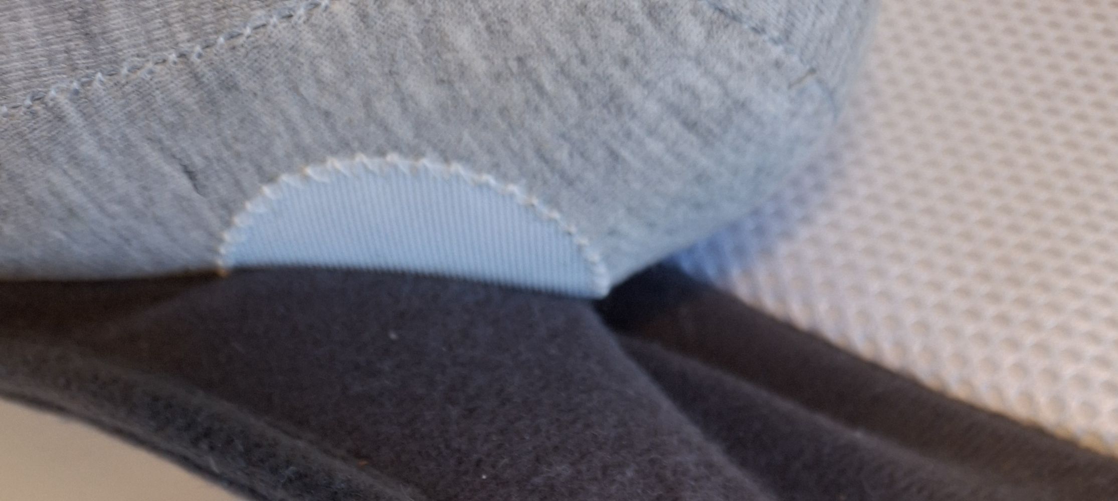 La parte più imbottita è fissata alla base con velcro in modo da poterla staccare per facilitare il lavaggio.