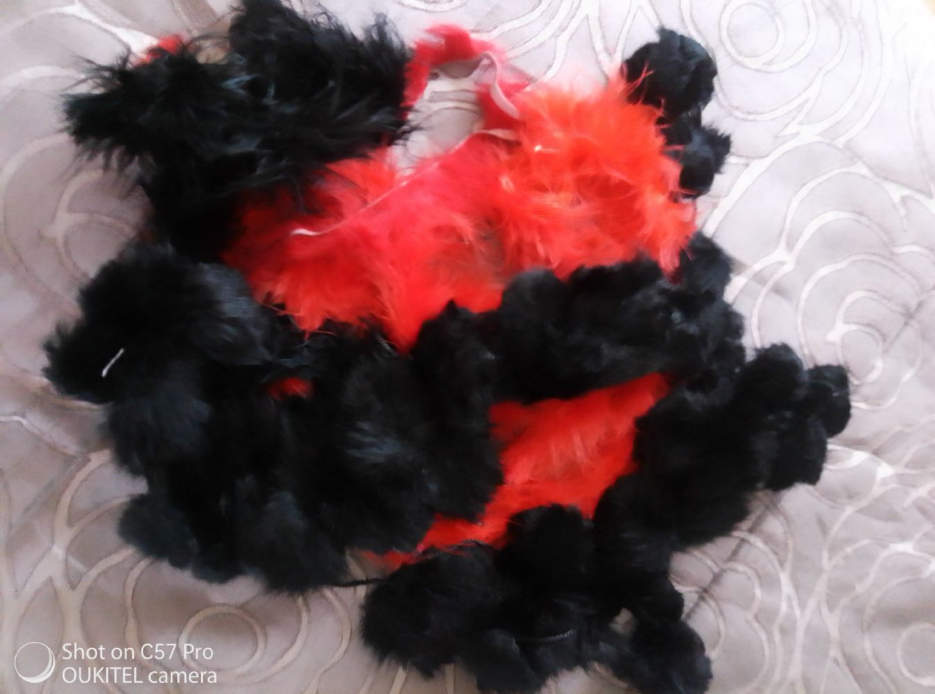 Descrizione:Lotto pezzi di boa rossi e pon pon neri per creazioni artigianali non divido