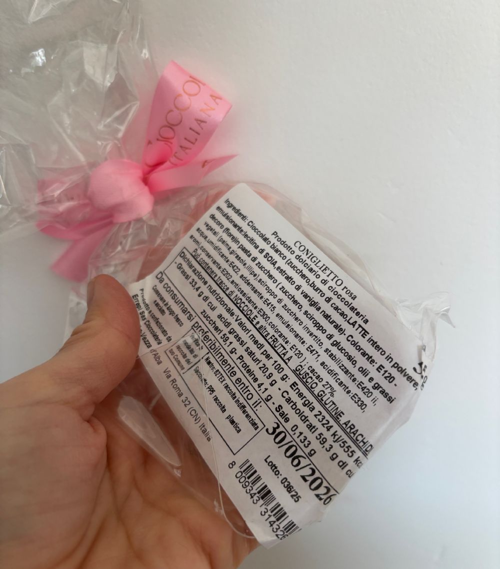 Descrizione:Cioccolato rosa mai aperto e comprato in pasticceria per Pasqua.