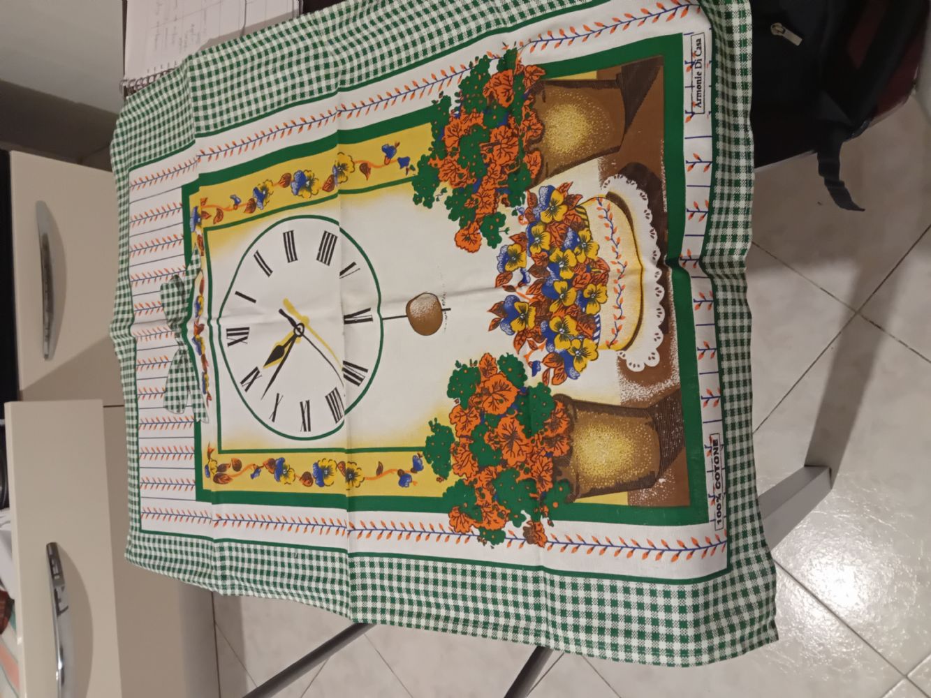 Descrizione:Si può usare anche come tovagliettq 85/60cm piccolissime macchiette date dal tempo . Penso cotone 100% o misto lino comunque del tipo che non fanno più e che durano una vita . È nuovo mai usato da rinfrescare