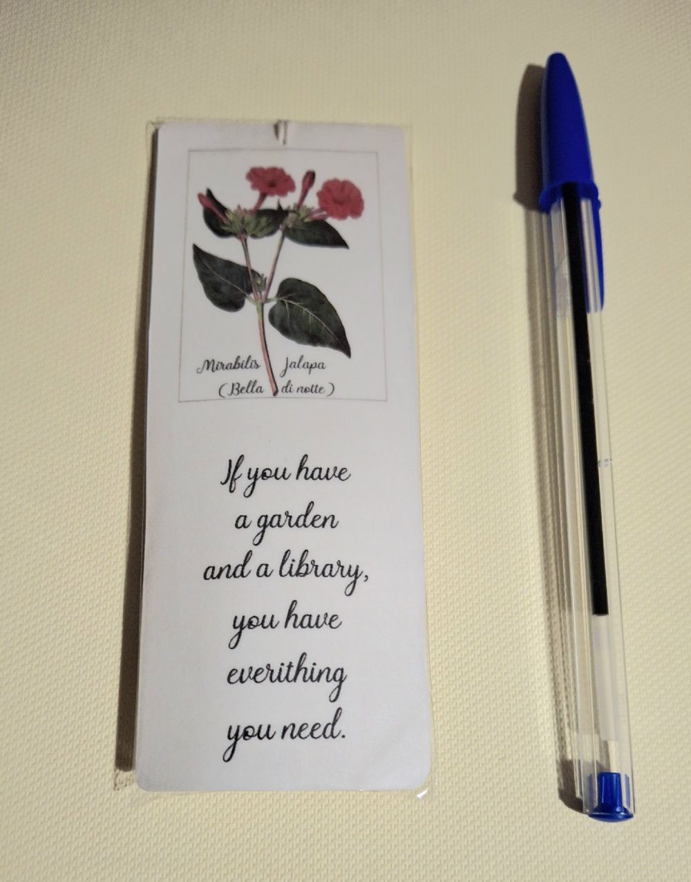 Descrizione:Segnalibri realizzati in cartoncino plastificato con bustina di semi di Mirabilis Jalapa, nota anche come bella di notte.