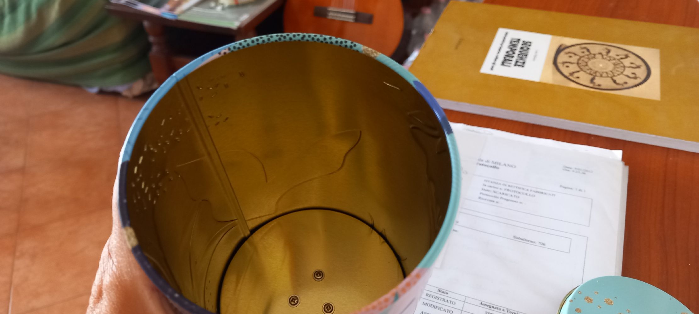 Descrizione:1 conteneva panettone Esselunga cm 20 x 20