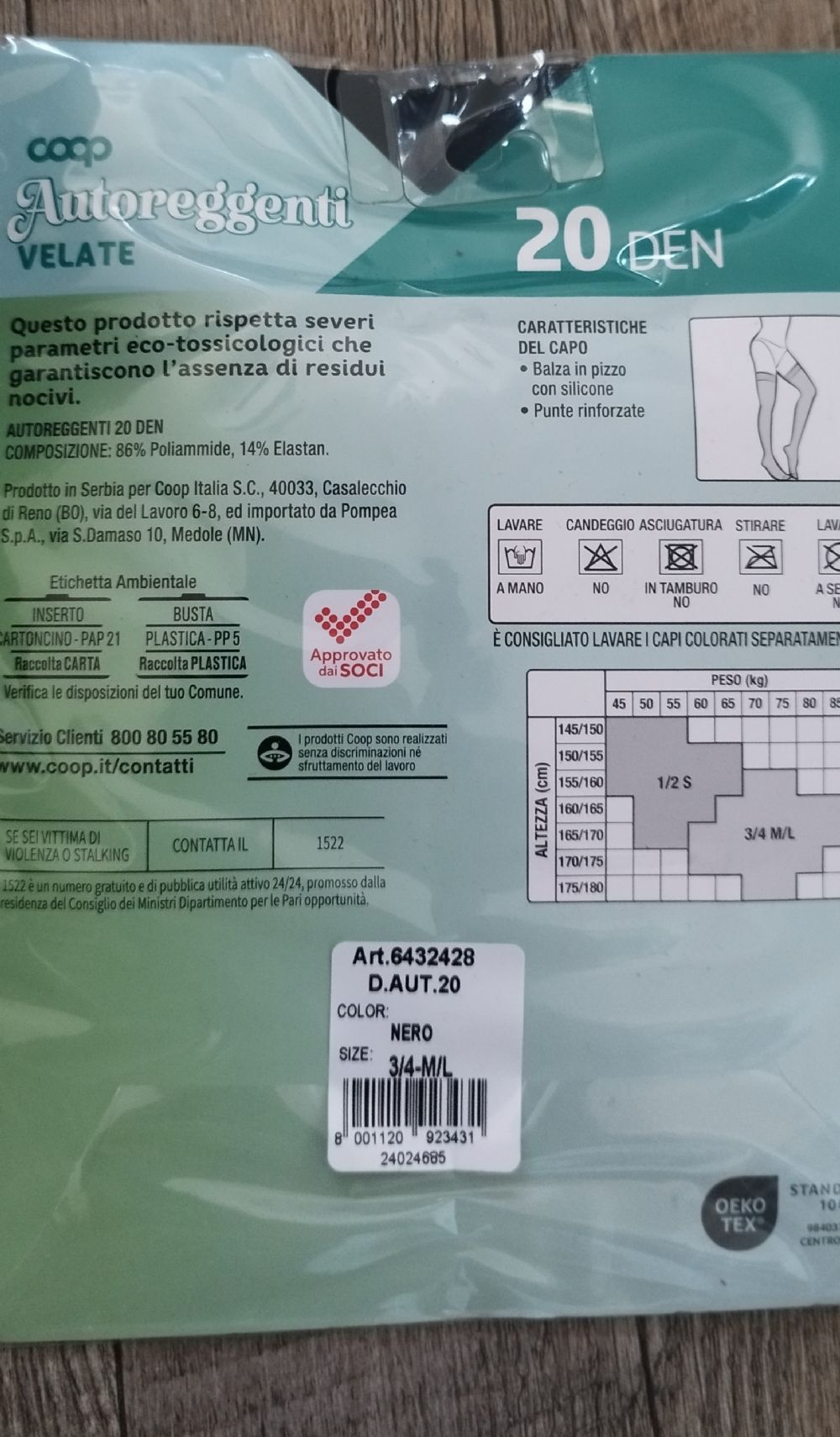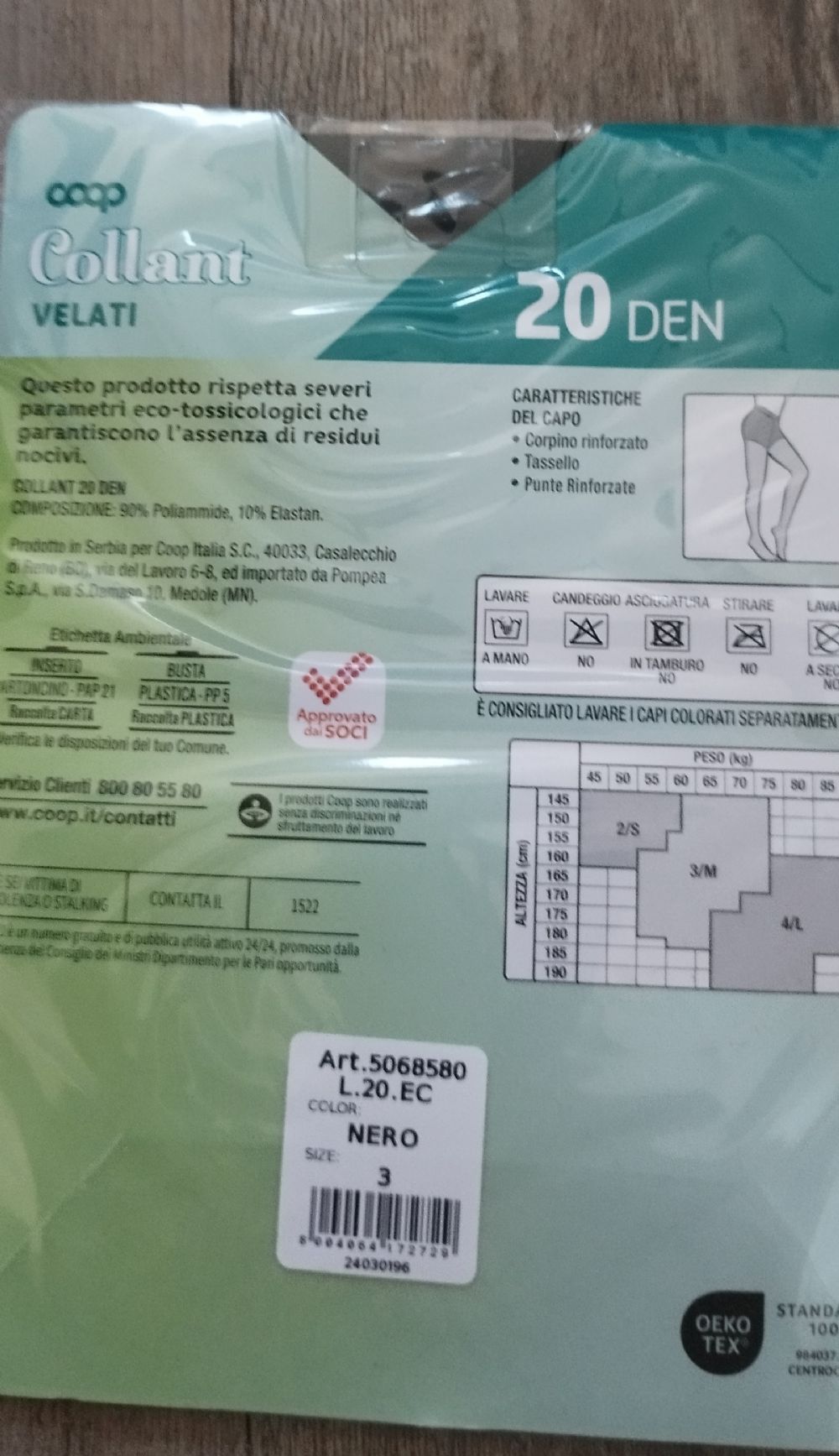 Descrizione:Collant 20 den con corpino e punte rinforzate taglia 3 M