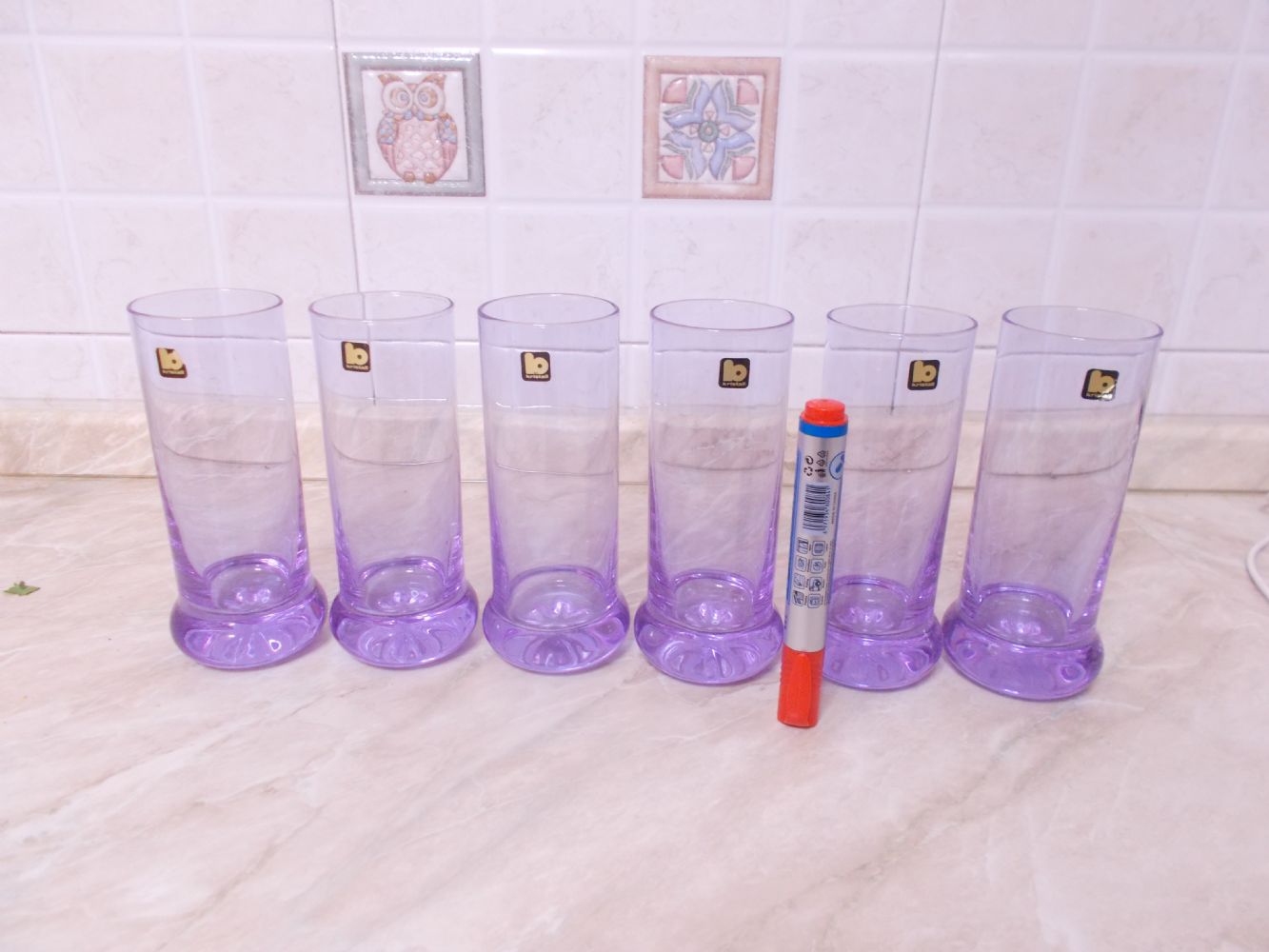 Set 6 bicchieri da liquore in vetro trasparente lilla altezza 15 cm