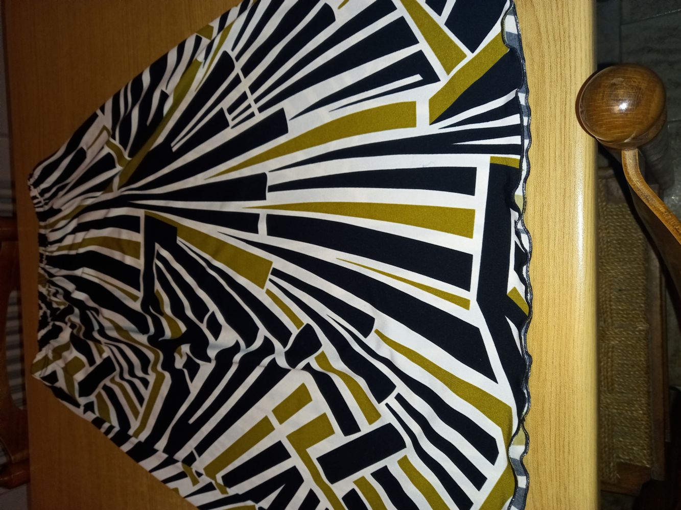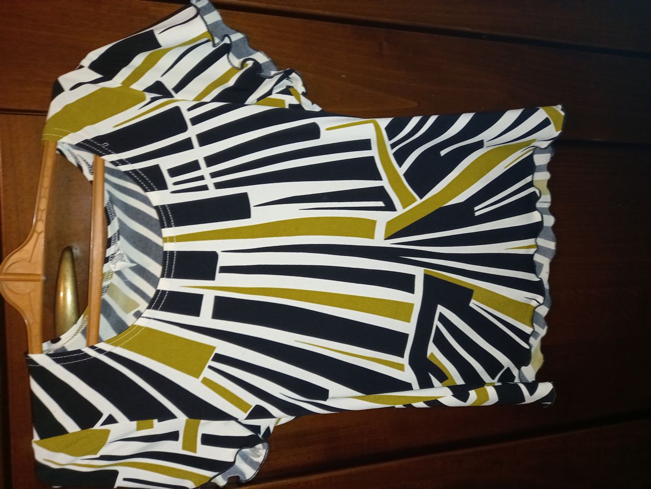 Completo maglietta e gonna, maglia larghezza spalle cm34, gonna elastico in vita lunga cm 64, tessuto elastico, presa in Australia, riporta tg 10, andava bene a mia madre che ultimamente aveva tg 42