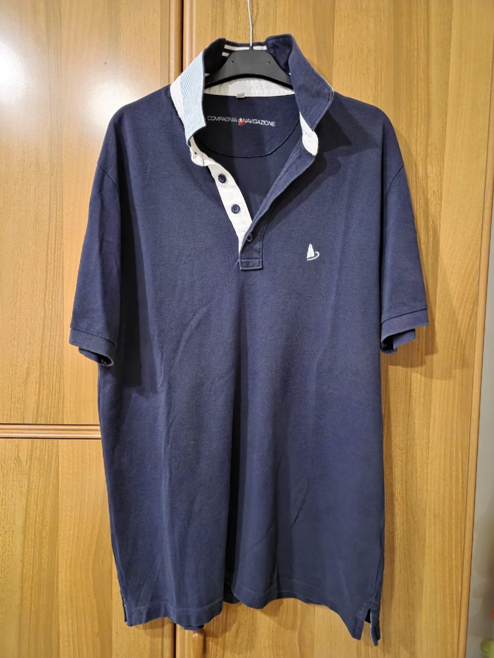 Polo blu uomo Compagnia di Navigazione tg XL, 100% cotone spalle 50 cm ascelle 51 cm lunghezza 73 cm