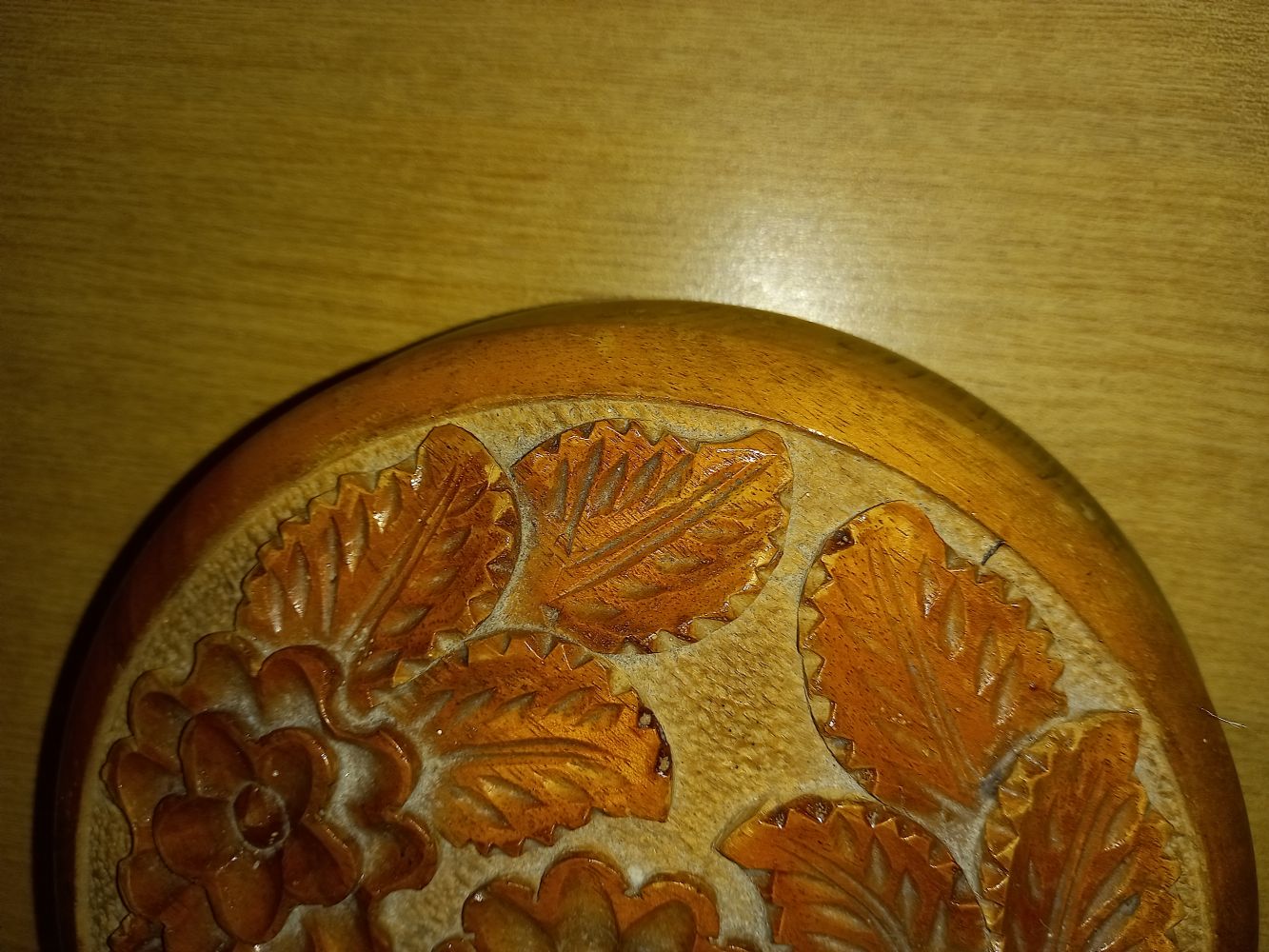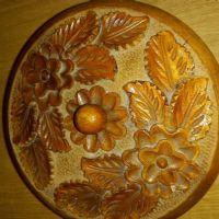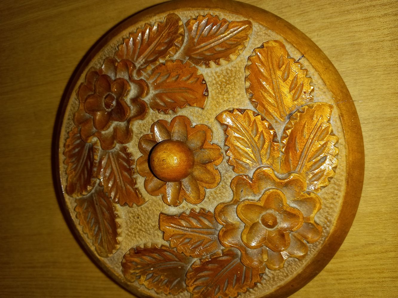 Vintage,appena rovinata in un angolino,ma non si nota ( vedi ultima foto)diametro cm 18,altezza 6 ( escluso pomello centrale),