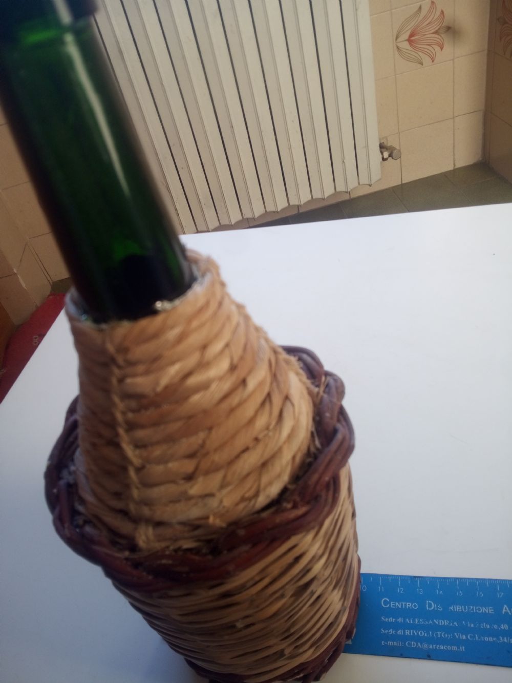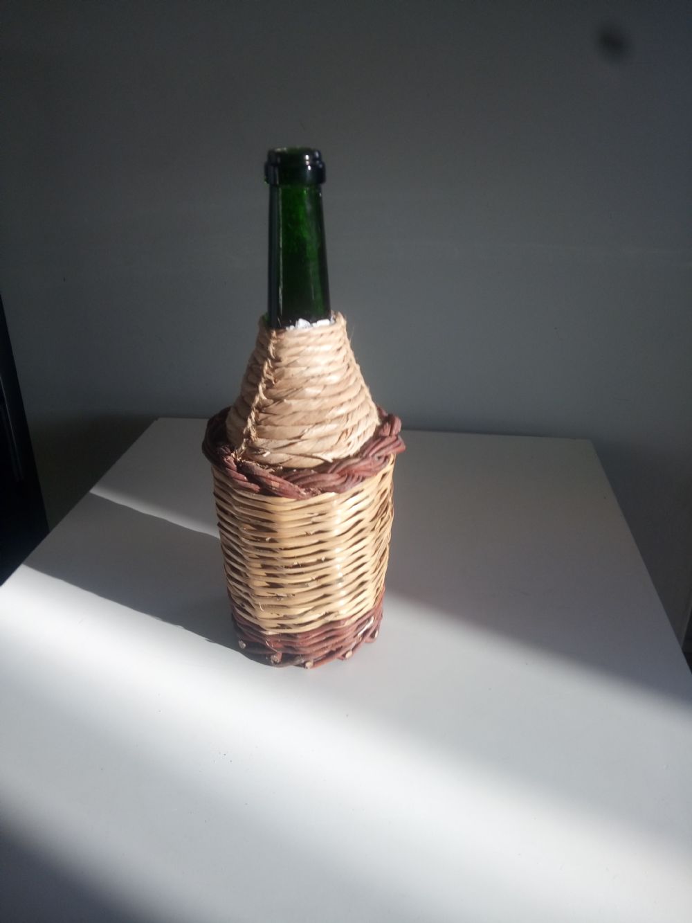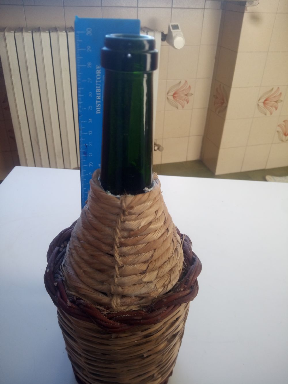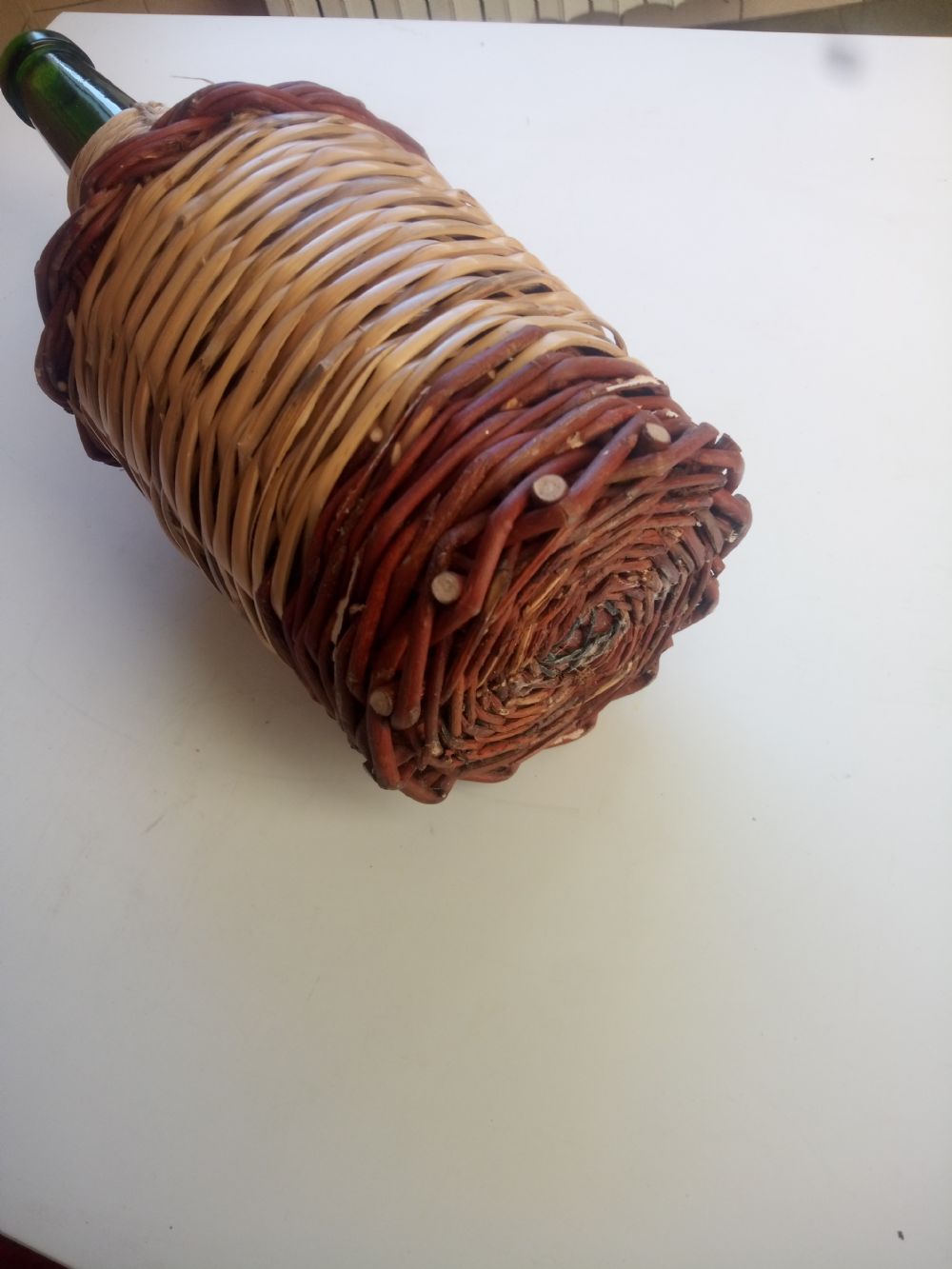 Descrizione:La bottiglia è rivestita con rafia canna e salice ed è piena d'amore ....ormai scarso ovunque
