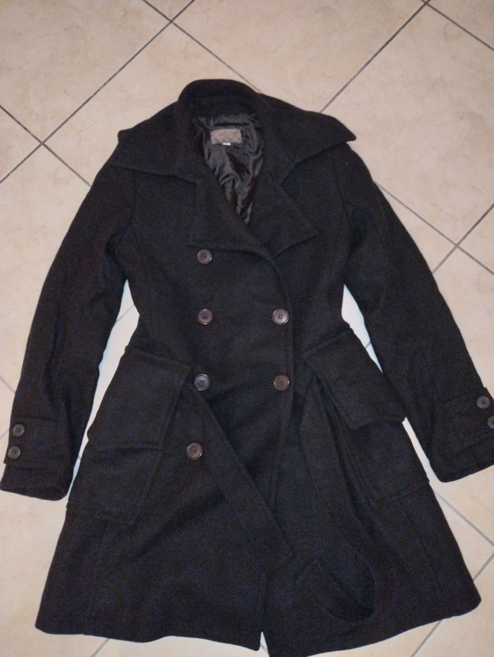 Descrizione:Capotto nero in panno di lana taglia S , taglio sagomato, con tasche e cintura