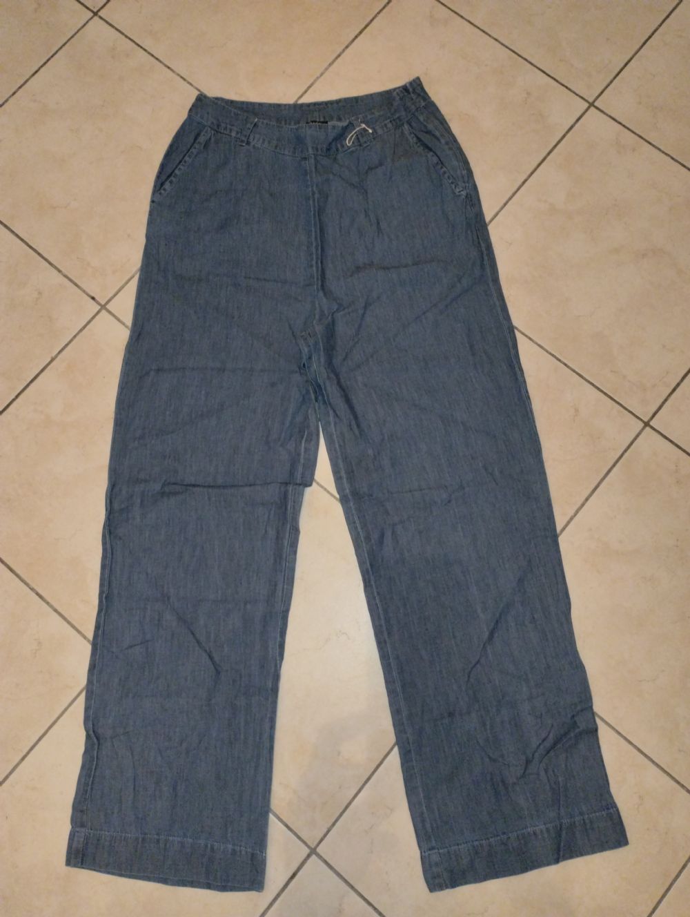 Descrizione:Pantaloni jeans leggeri, a vita alta, acquistati, ma mai usati per taglia errata, riporta taglia S ma vestono di più.