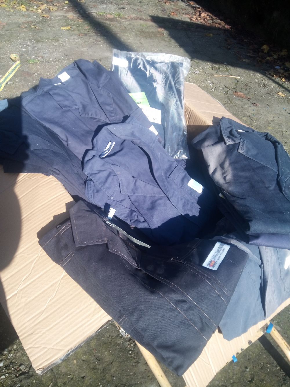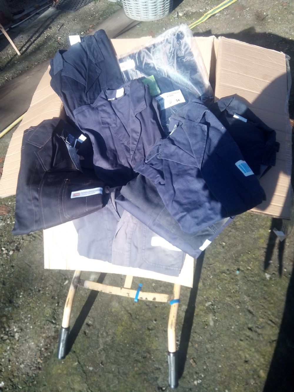 Descrizione:Gli indumenti che metto in scambio sono giacche e pantaloni con pettorina regolabile o salopette da lavoro ,la maggior parte sono ancora confezionate ,le taglie disponibili partono da 52/54/56