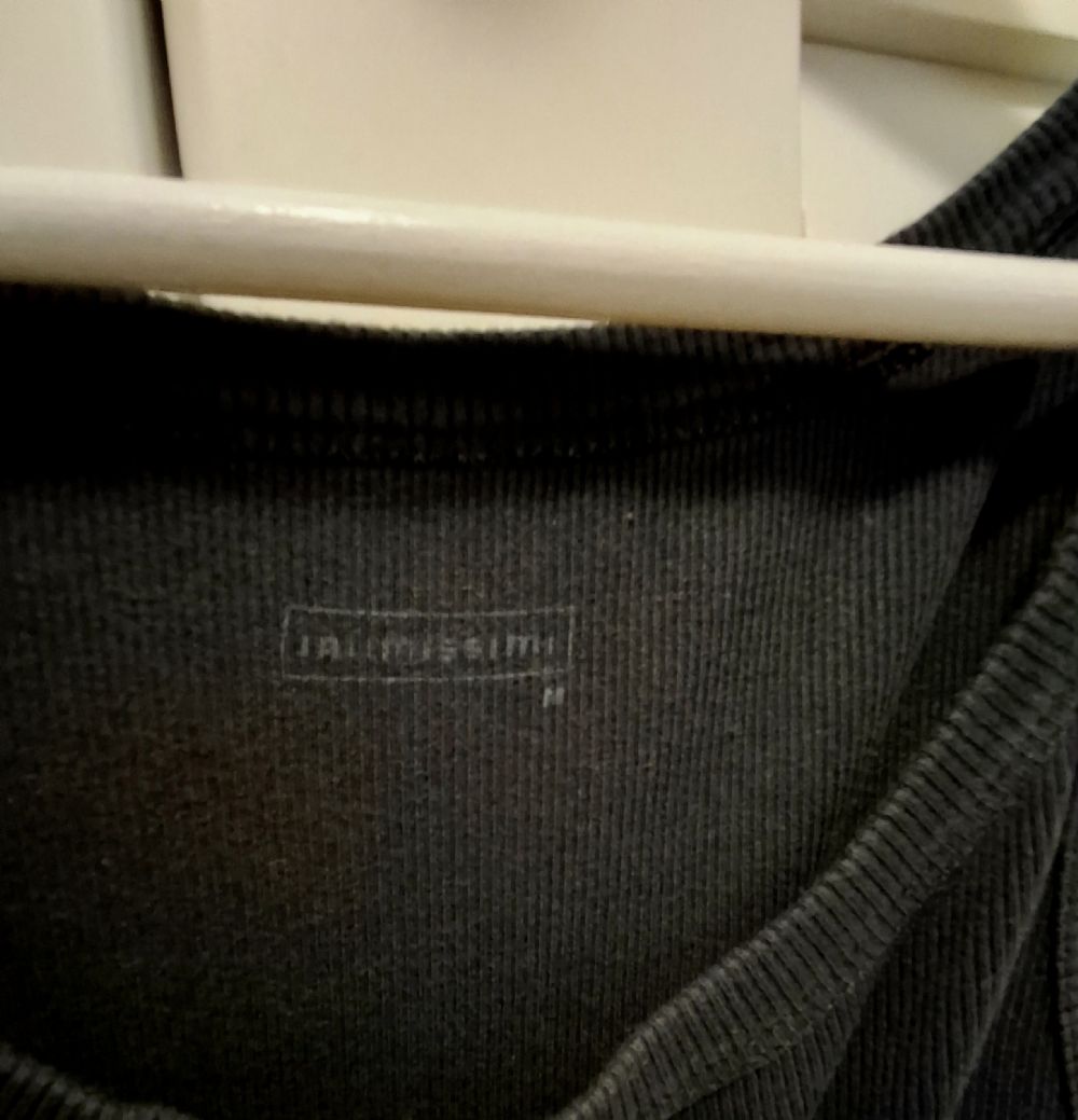 L'etichetta della composizione è stata tagliata, penso sia cotone con una piccola percentuale di elastan. Lavorazione a costine.