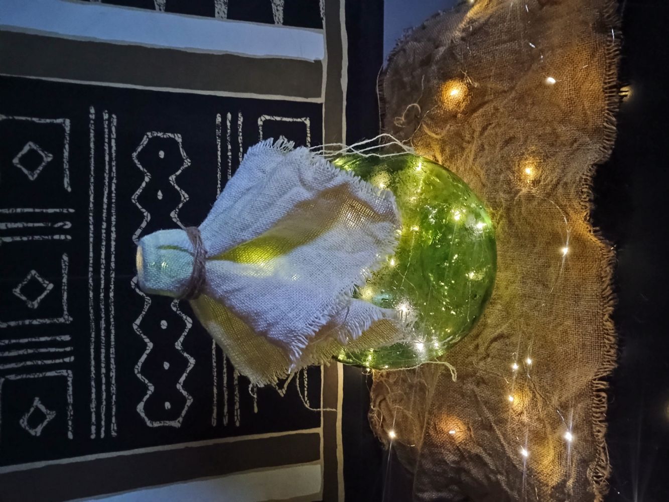 Descrizione:Lampada artigianale dal sapore antico, realizzata a partite da un antico boccione utilizzato a fine '900 per la conservazione di olii e vino. L'odore della Juta con cui è rifinito ricorda il profumo dei nostri nonni, che trasportavano i prodotti delle campagne in grossi sacchi, a cavallo di muli. Piccoli led a batteria creano un ponte tra il passato e il presente, rendendo questo oggetto di arredamento unico nel suo genere.