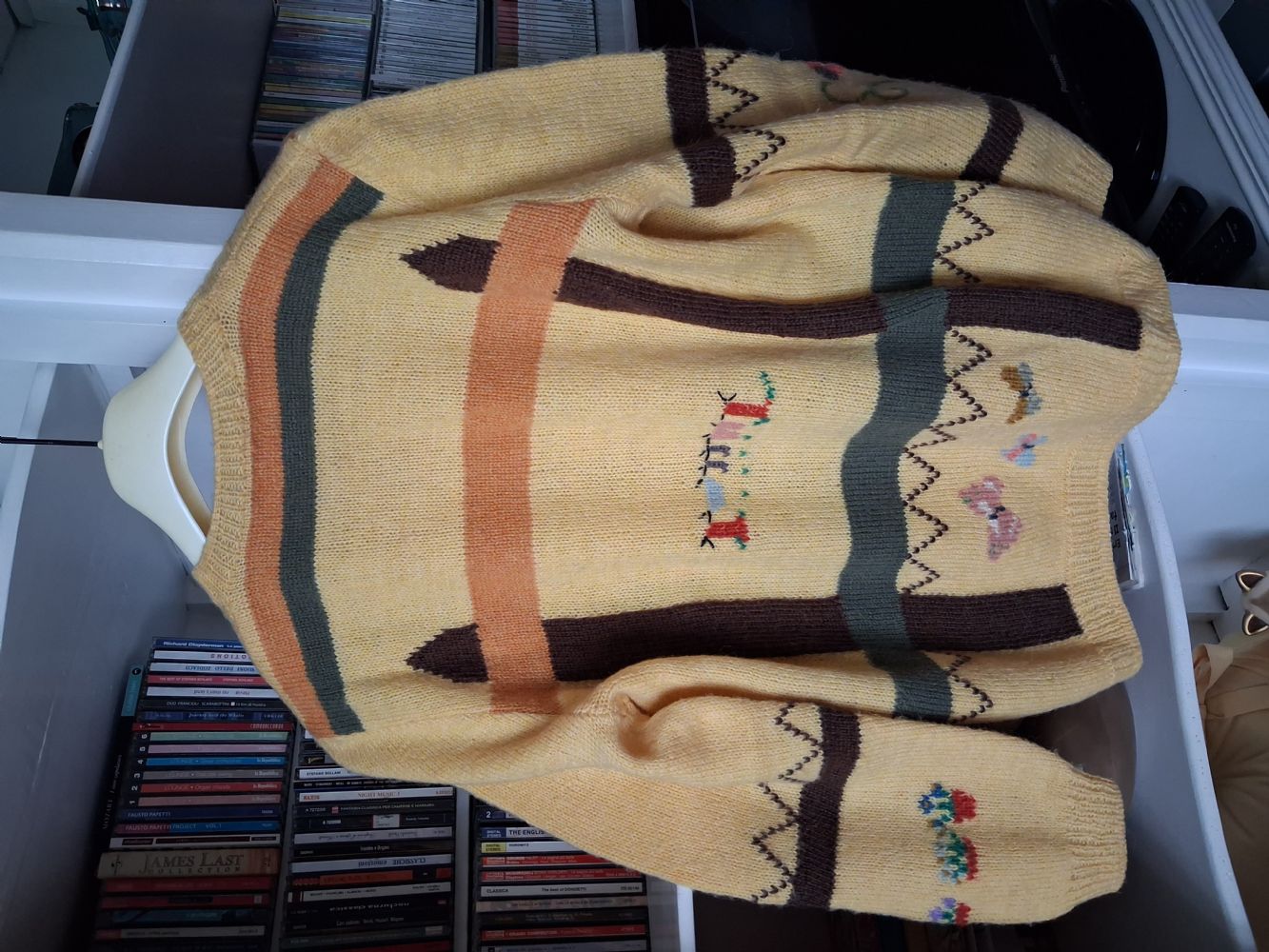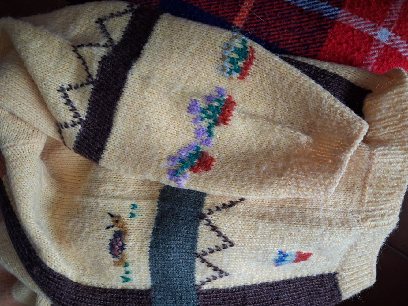 Descrizione:golfino in lana fatto e ricamato a mano su tutti i lati compreso le maniche