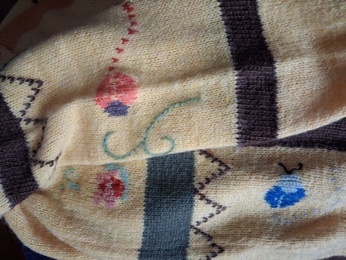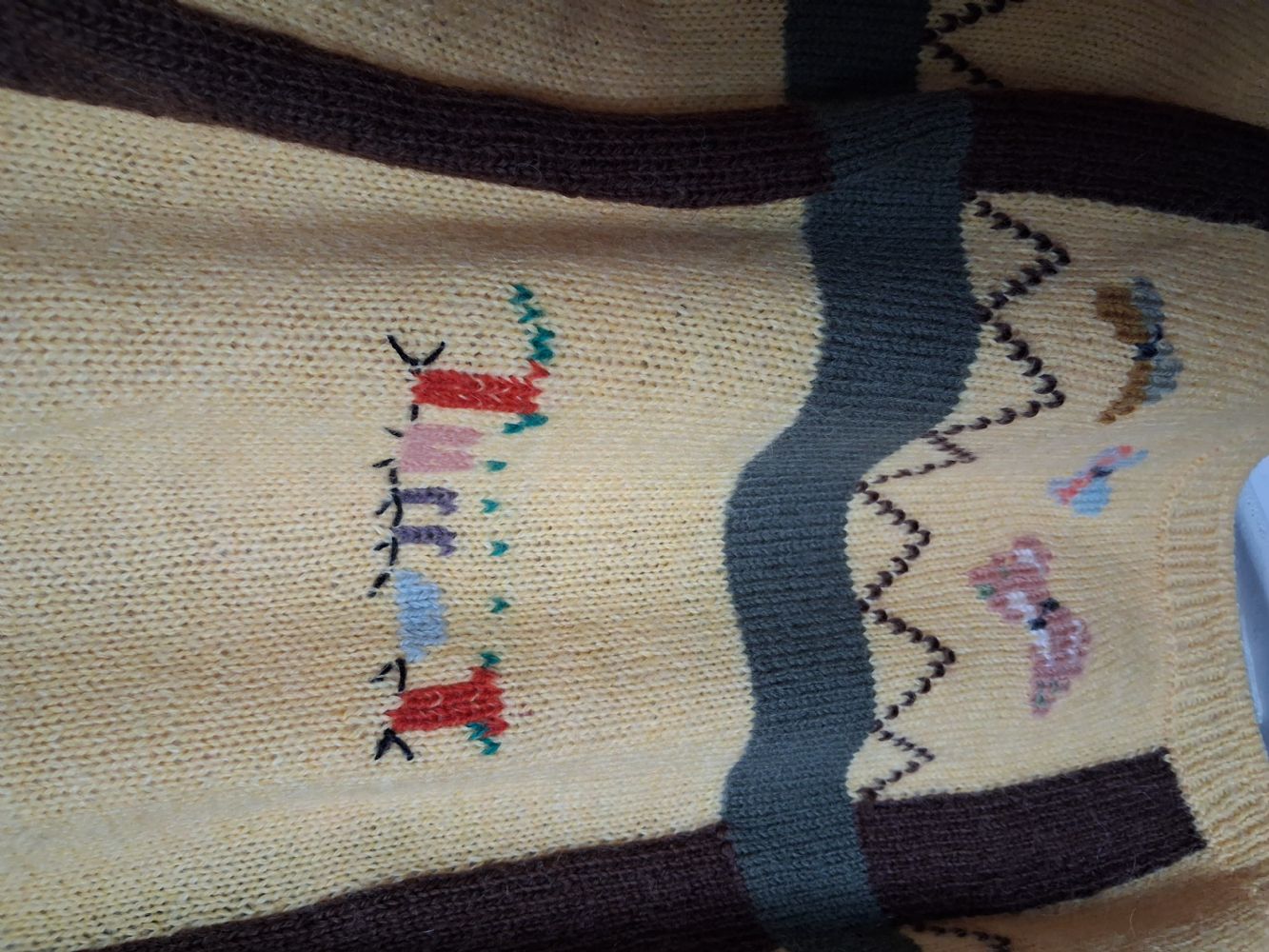 tutte le figure sono state ricamate a punto maglia creando un tutt'uno con il maglione