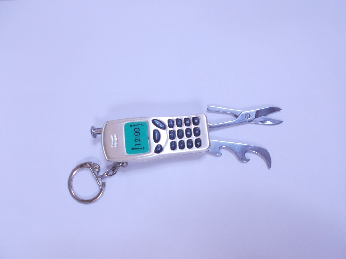 Accendisigari portachiavi a forma di cellulare con forbicine e apribottiglie