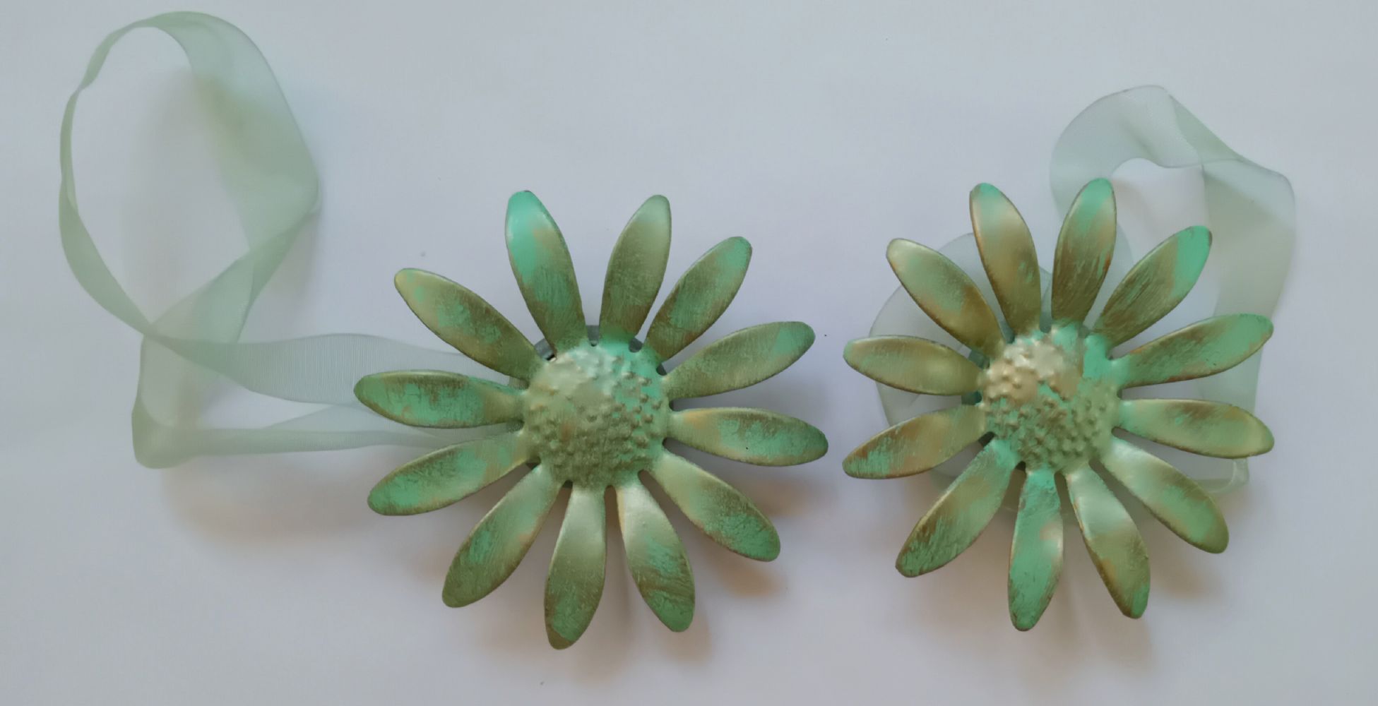 Descrizione:coppia di calamite ferma-tenda in metallo a forma di fiore