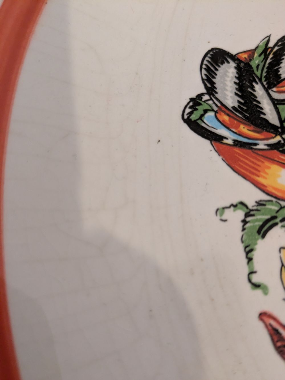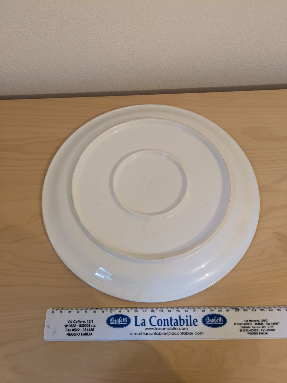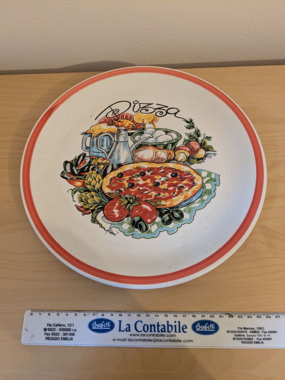 Descrizione:Piatto da pizza, ho messo usato tanto perchè ha qualche crepetta superficiale (al tatto non si sentono ma sono ben visibili come in foto)