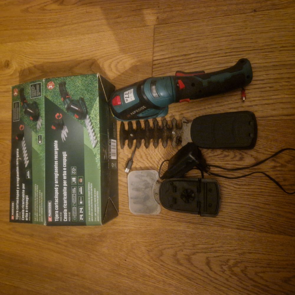 Descrizione:Cesoia ricaricabile per erba e cespugli, usata da mio marito per la.nostra siepe. Funzionante.