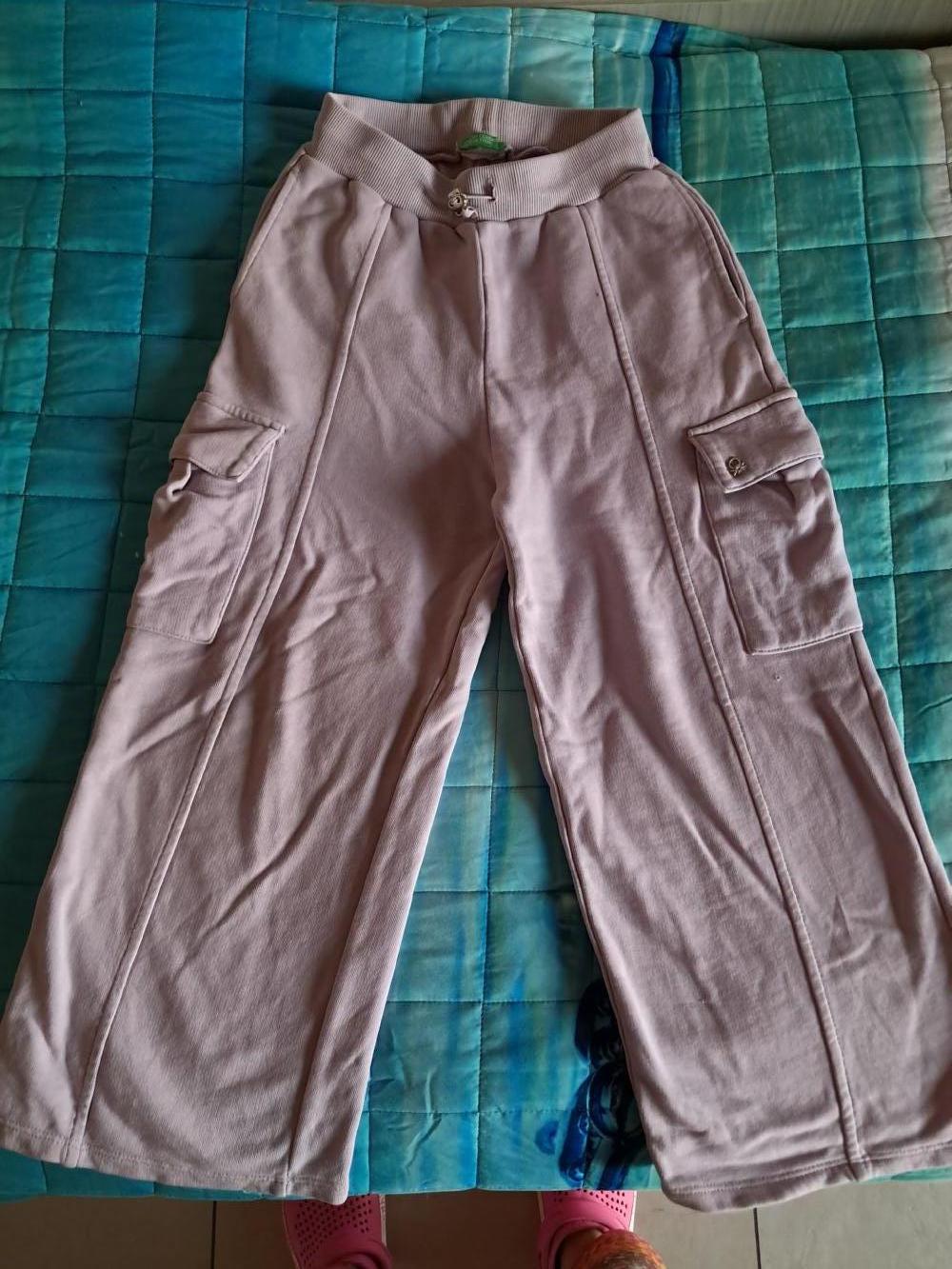 Descrizione:Pantaloni in cotone garzato Benetton colore lilla, presenta un microbuchino dovuto alle gatte (vedi foto), e una macchia piccola che penso vada via col lavaggio. Taglia non indicata, cmq veste 8-9-10 anni