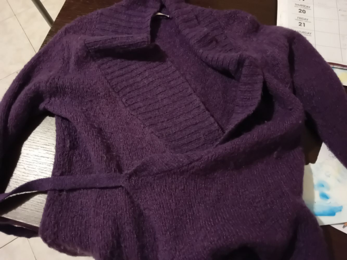 Usato ma ancora sfruttabile segna l/×l ma direi dalla m in su 65%lana 25% mohair 10%el bel viola