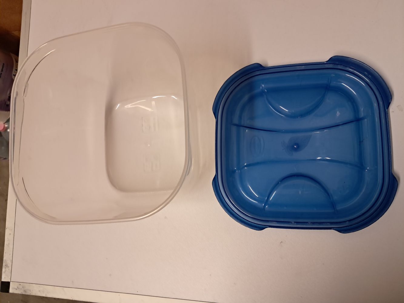 Descrizione:4 contenitori di plastica alimentare, marca Tontarelli, praticamente nuovi, lavabili in lavastoviglie, misura 20 x 20 x 15 cm, capacità 3 litri. 2 crediti l'uno