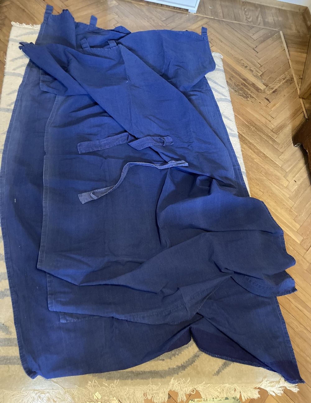 Descrizione:Due vecchi tendoni IKEA in cotone pesante blu, inutilizzati da tempo. Si sono sbiaditi già con il primo lavaggio, ma il cotone è molto buono.