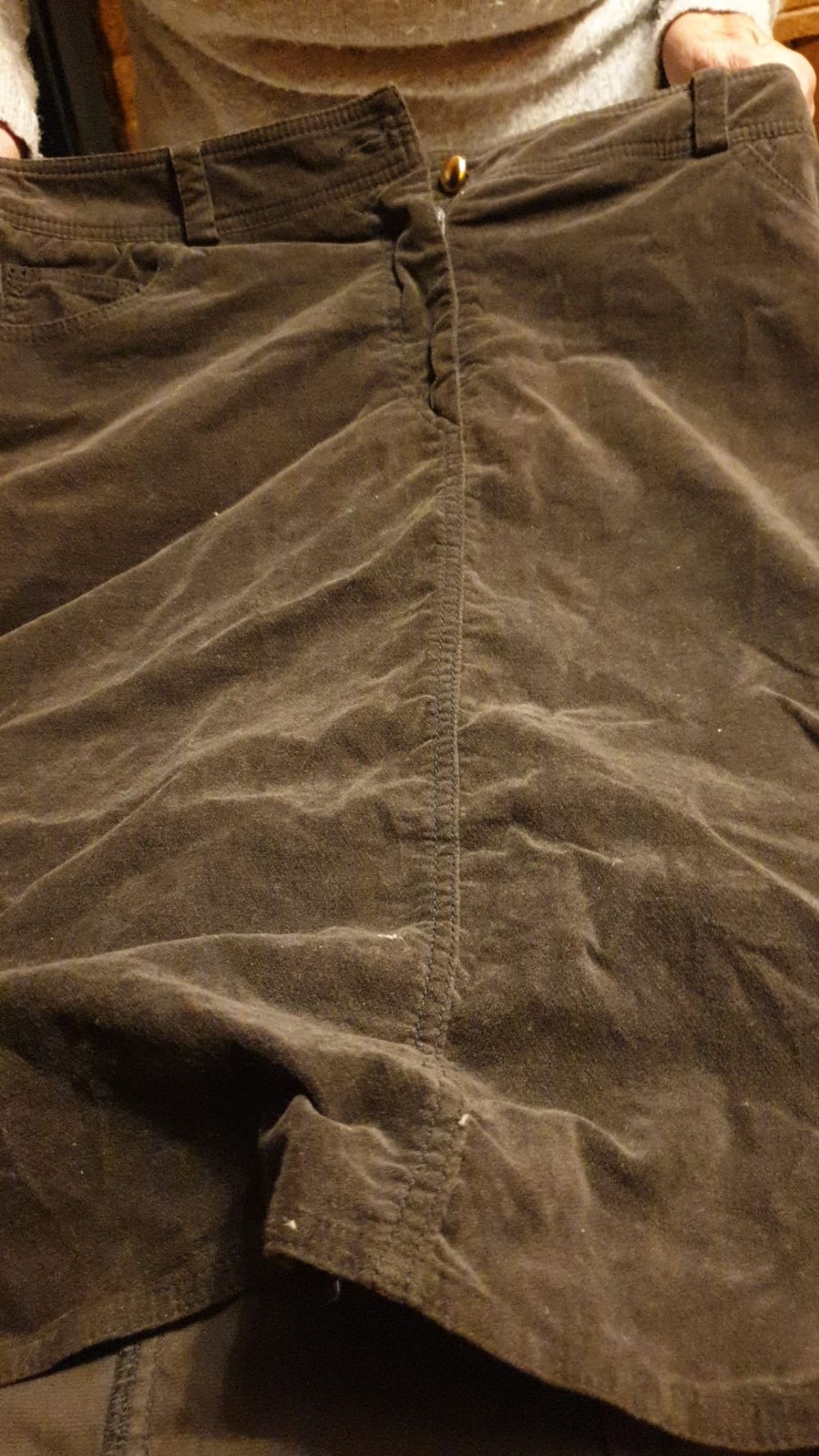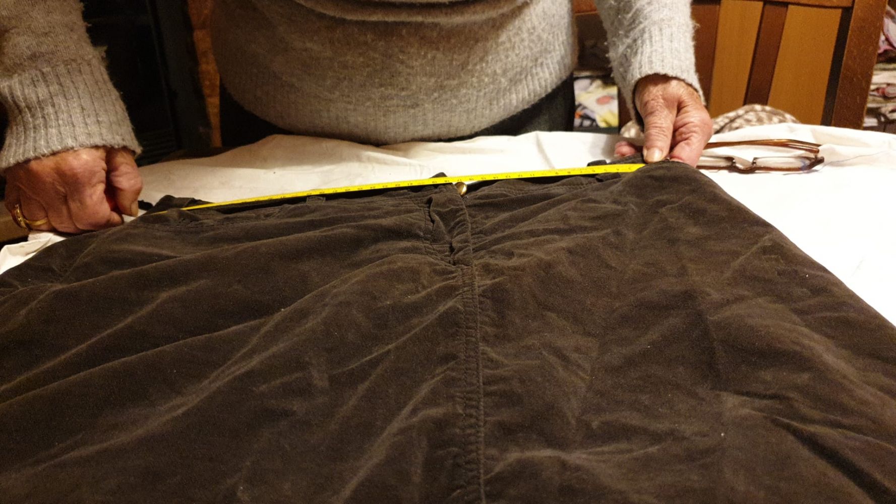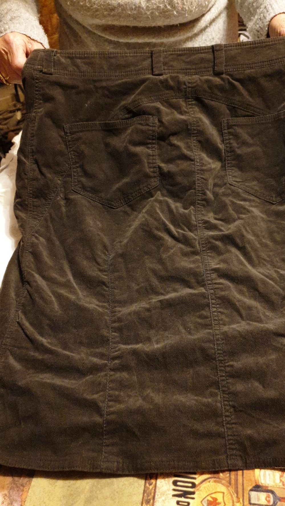 Con tasche e fodera. 60 h x 42 vita ( è "dritta")