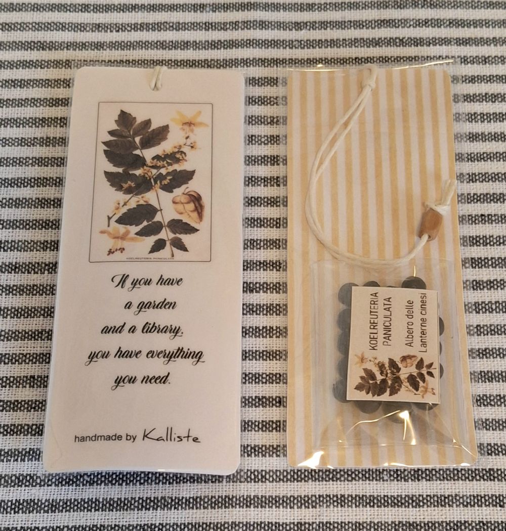 Descrizione:Confezione regalo segnalibro plastificato + bustina con semi di Koelreuteria Paniculata, conosciuta anche come "Albero dorato della pioggia" o "Albero delle lanterne cinesi"